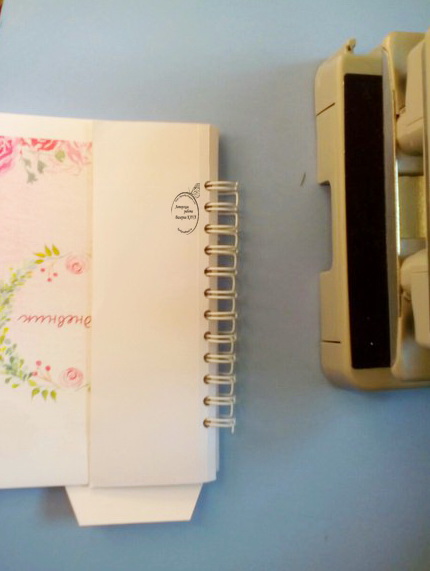 теперь нам понадобится лист скрапбумаги длиной 20см. складываем его пополам и дыроколим отверстия с помощью биндера