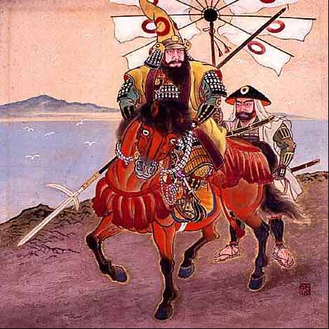 Вероятно, тем же было обусловлено изготовление военных полумасок с неприятным и отталкивающим выражением лица, снабжённых усами и бородой иногда неестественного цвета, которые должны были внушать ужас и отвращение противнику. Старинные описания приводили наиболее распространённый среди воинов вид стрижки бороды и усов: бороду оставляли только на кончике подбородка, концы усов опускались вниз, как у Сугавара-но Митидзанэ,