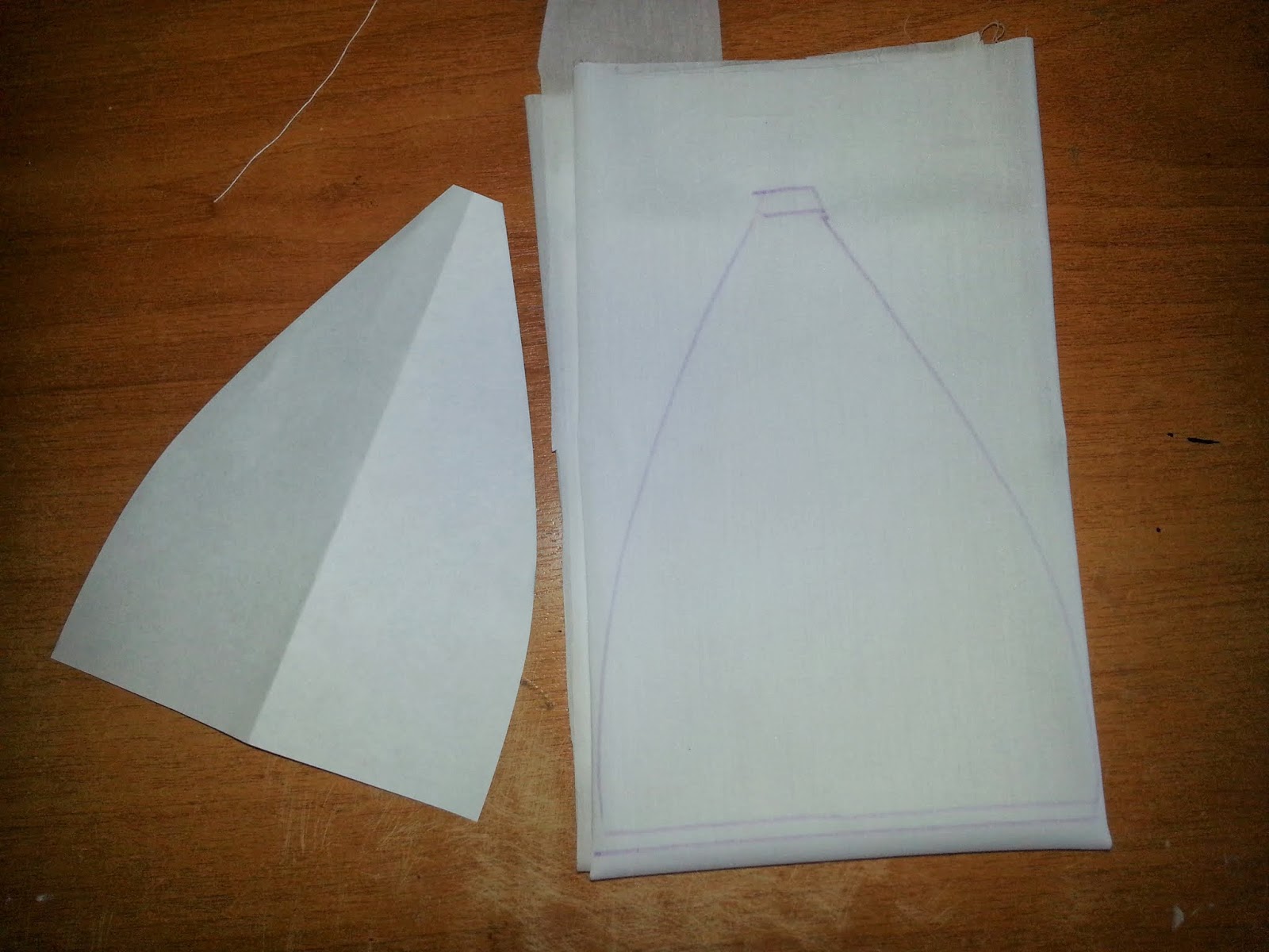 Я еще для большей достоверности измеряю окружность будущего зонта, делю это число на количество спиц. Замеряю низ заготовки из бумаги, и подгоняю под размер ( под то число, которое у нас вышло при подсчетах ). Например, я изначально вырезала заготовку 13 см. у основания треугольника. А при измерении вышло, что окружность зонта 72 см., при делении на 6 спиц, получилось число 12. Значит срезаем стороны треугольника, до того, чтоб у основания он был 12 см.