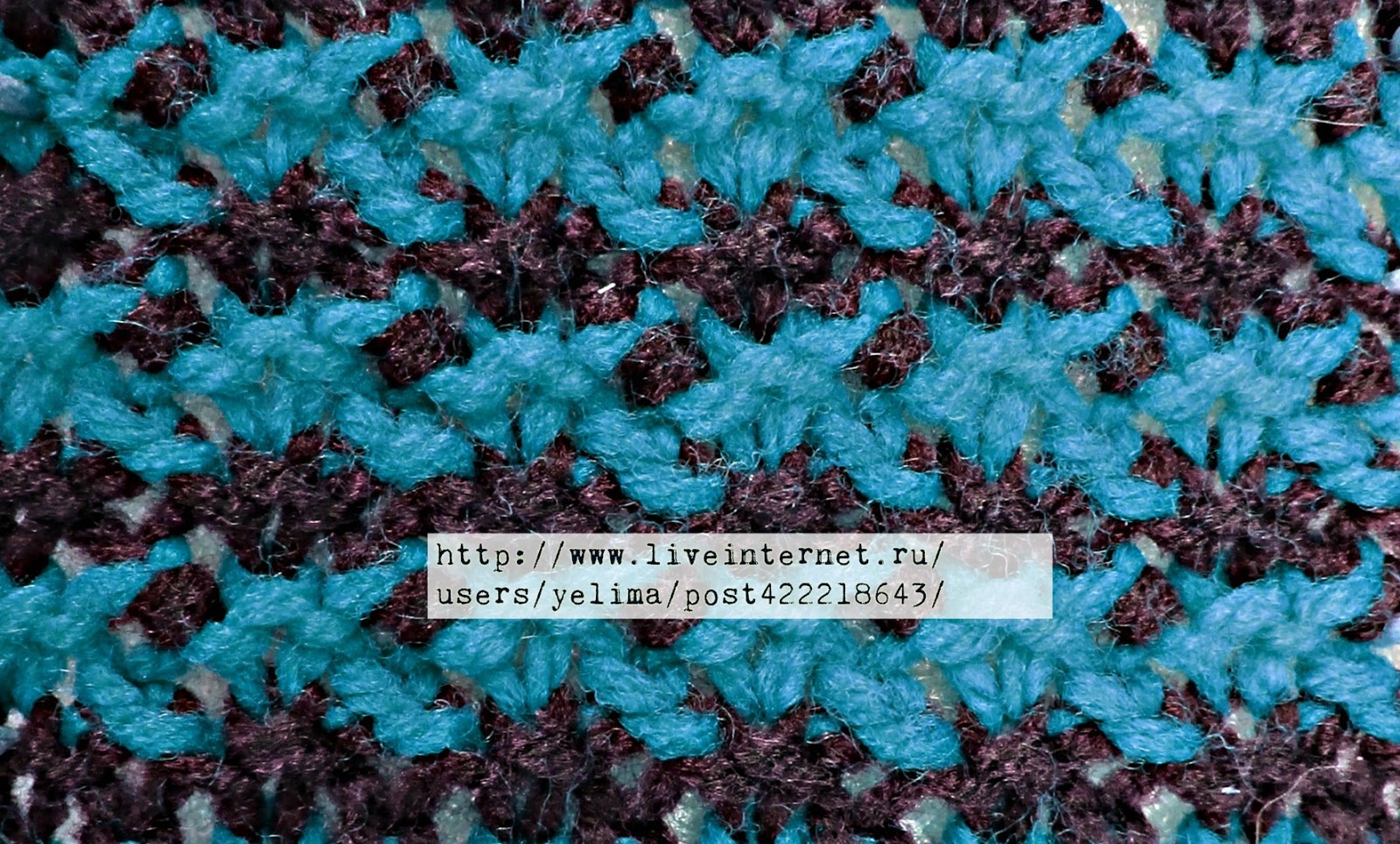 УЗОP N 2- точно также, как и узор-1, только 2 вместе провязываются везде за передние стенки.