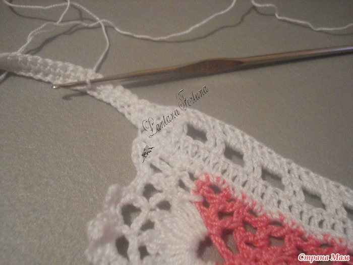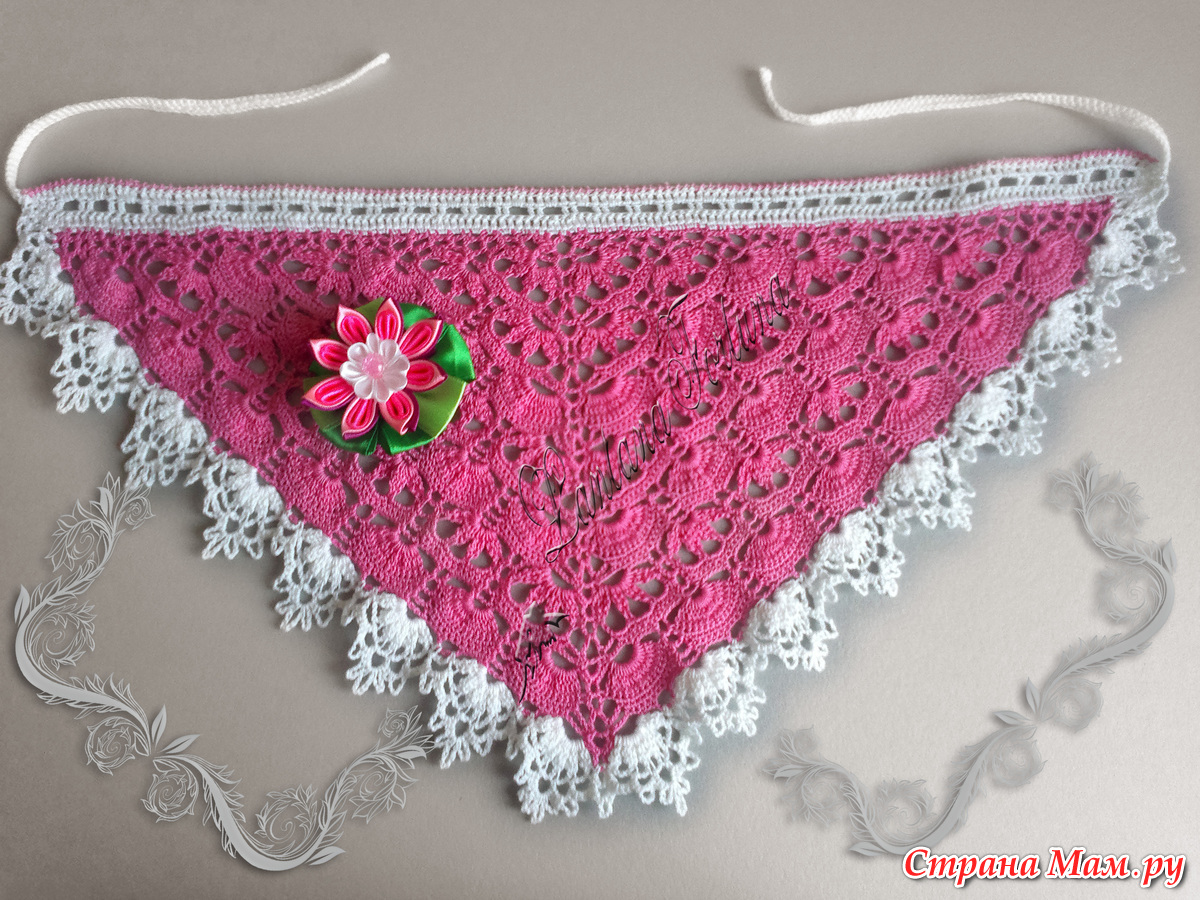 Потом я обвязала рачим шагом, розовой ниточкой косынку в конце (без завязок)