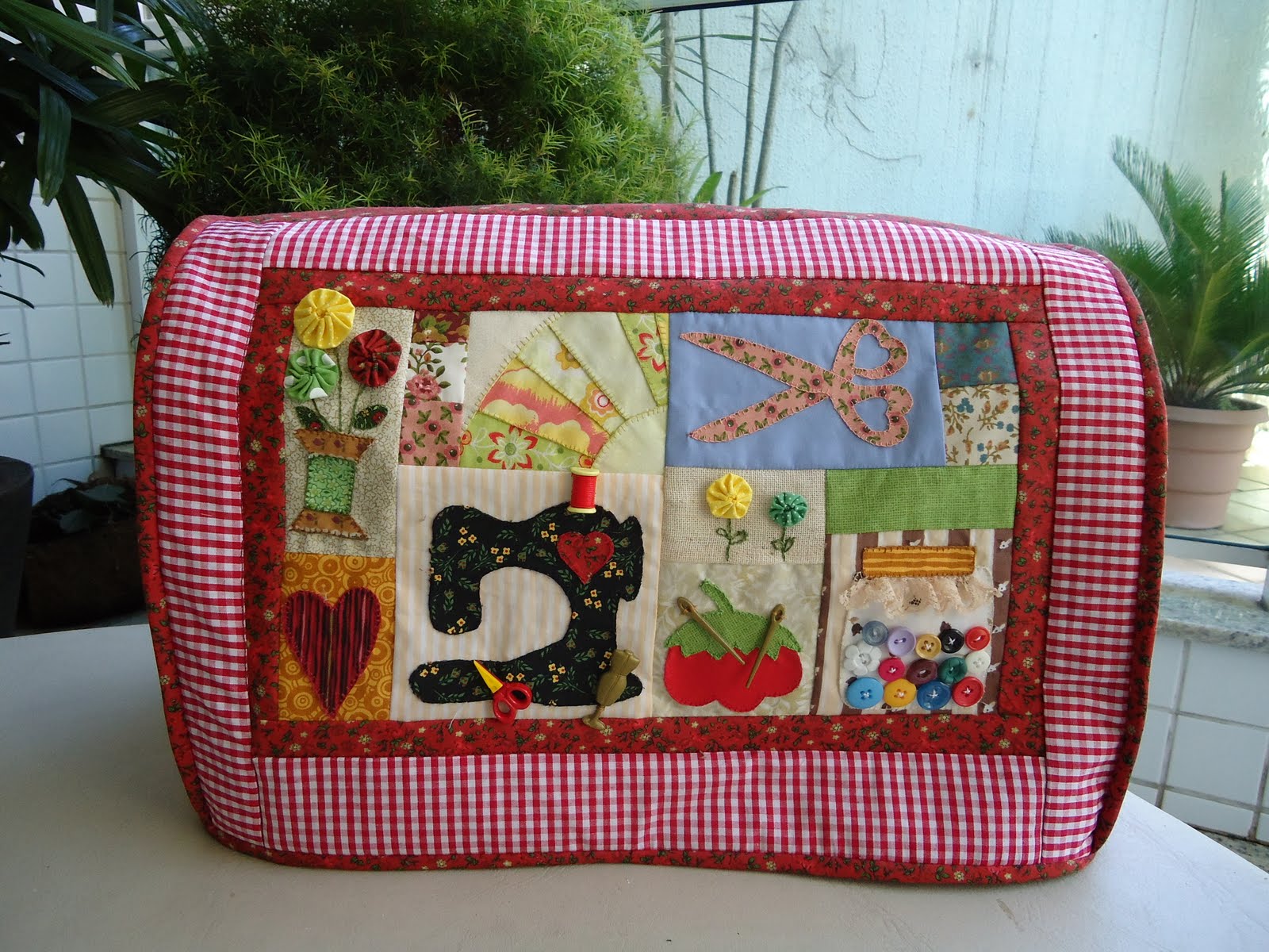 б) Из подходящей ткани вшить между вершинами переда и спинки полосу такой ширины, чтобы общая длина между точками А и В равнялась величине, полученной в первом пункте инструкции. Сложить из подкладочной ткани (у меня – белая бязь), синтепона и декорированной заготовки «бутерброд», простегать его и обрезать по размерам ваших выкроек с учётом припуска на шов 1 см. Получится прямоугольник, у которого ширина – это ширина нижней части чехла от машинки, длина – это величина АБ. Ну, и; плюс припуски на швы.