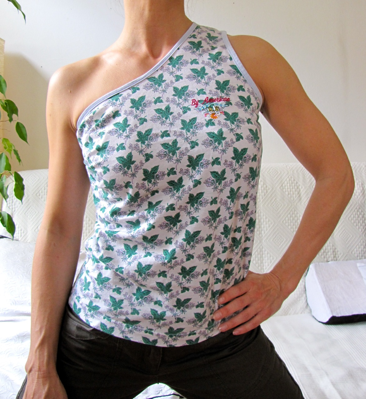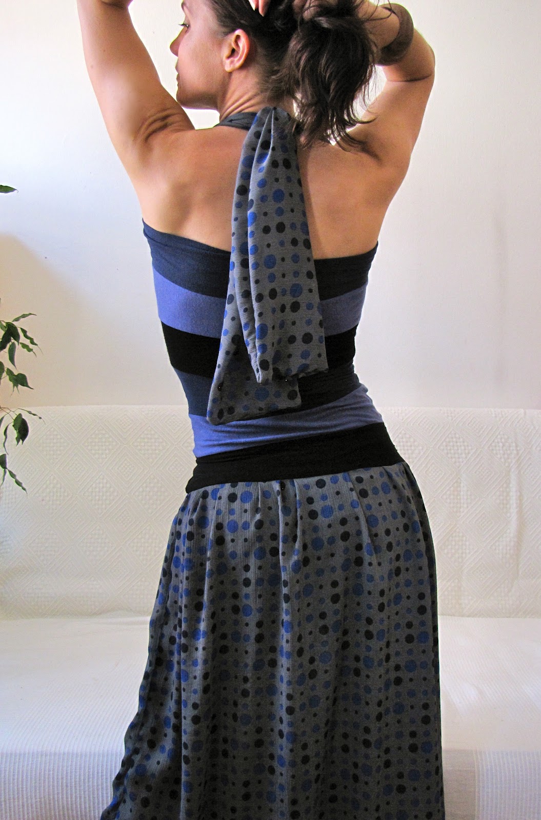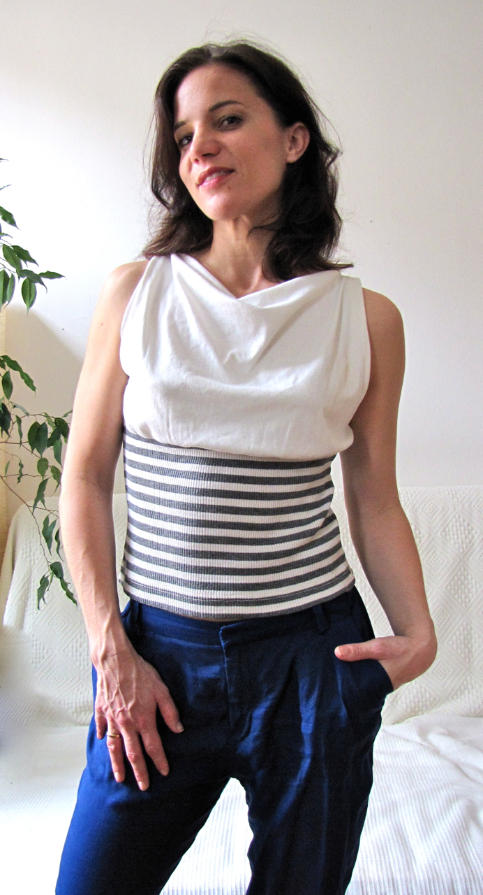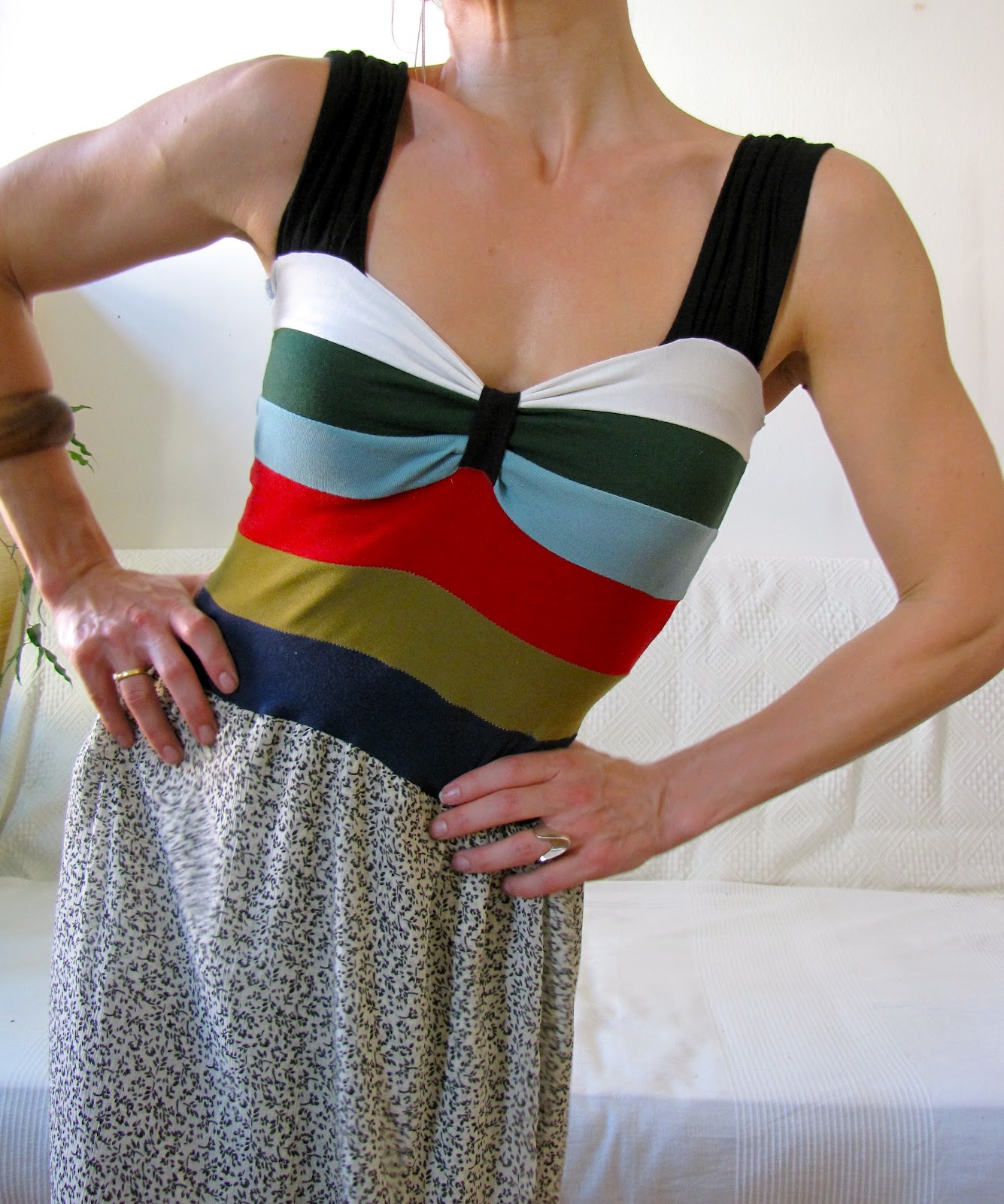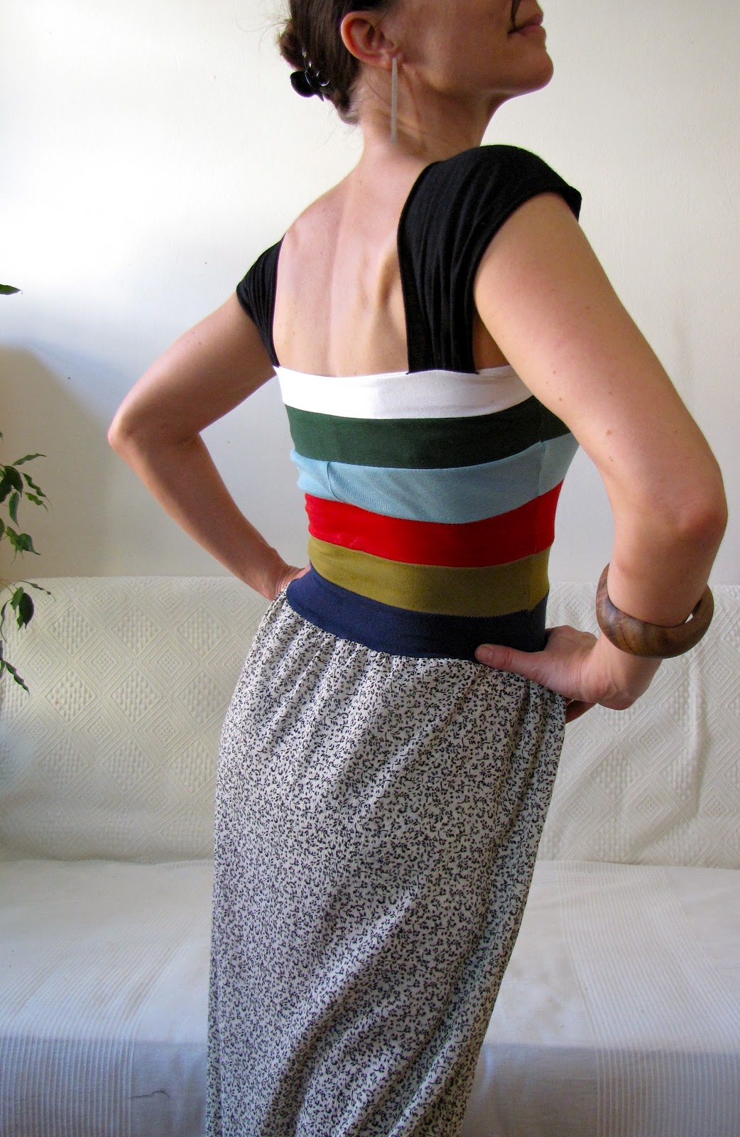 If you want a tube-top with no straps or sleeves, you are done with the top. Sew down the tag and the facing on the inside at the side seams and you have it: