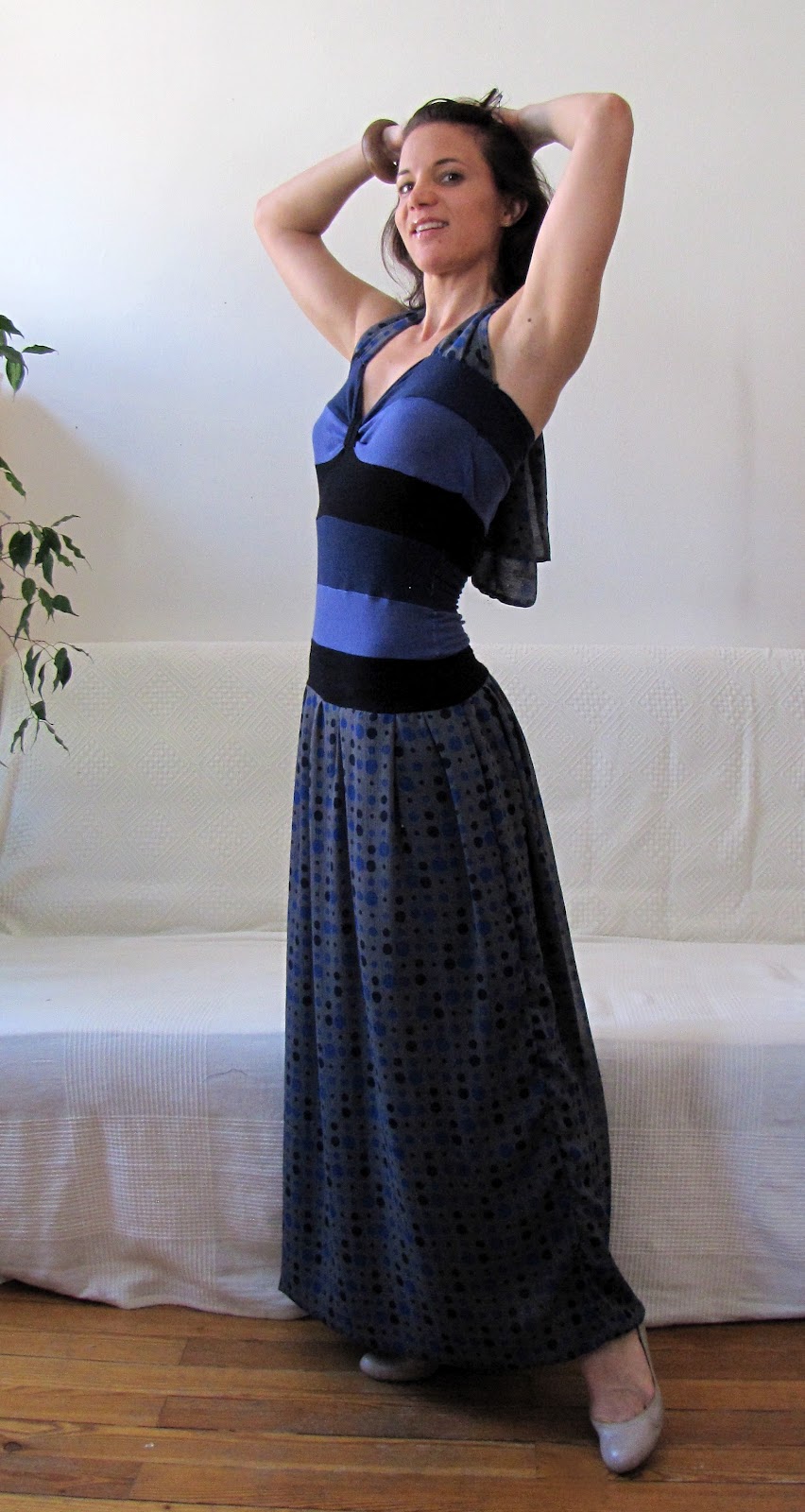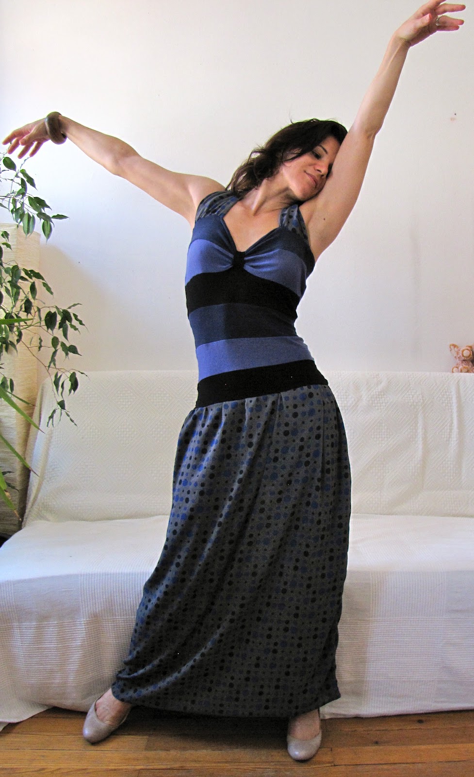 Depending on your figure, you might end up with straight sides (the bust tag gives enough shape for smaller women), or you might want to take it in at the waist, and curve out at the bust. Same for the skirt part, adjust it to your figure. And you could add slits at the side of the skirt: