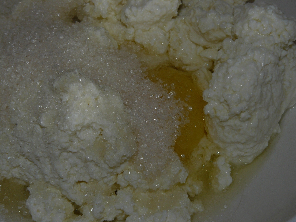 Для начинки: 500 гр творога, 0,5 стакана сахара, 1 яйцо.