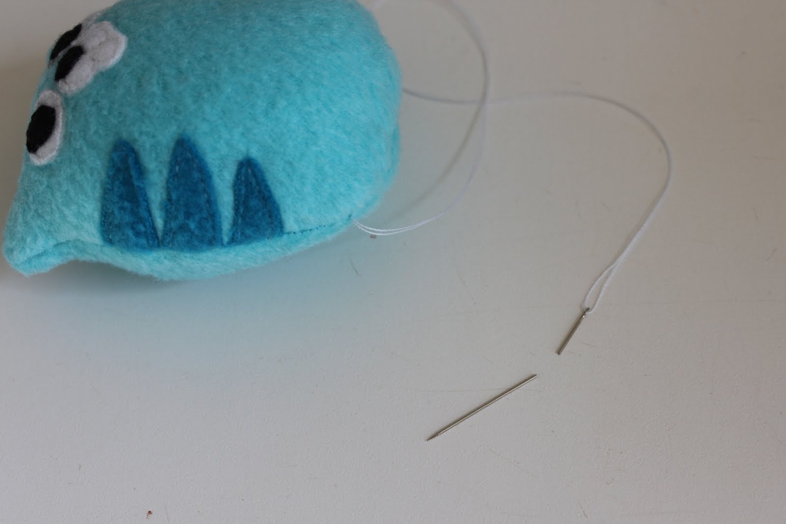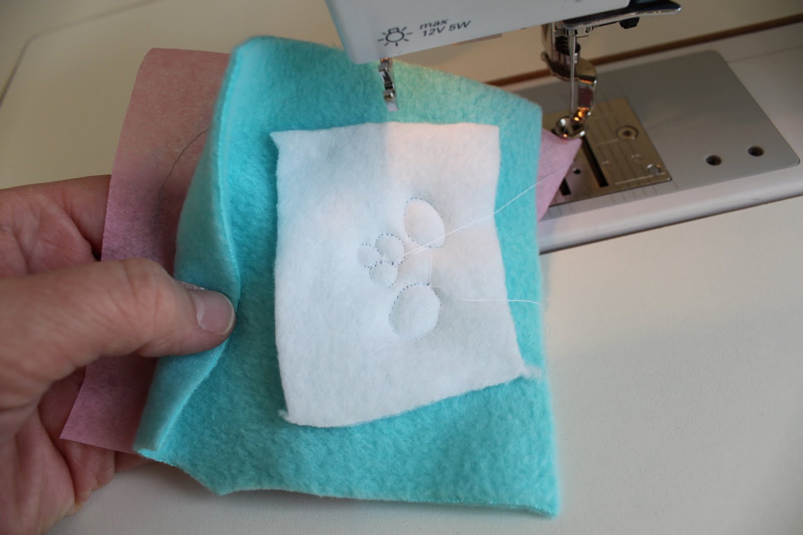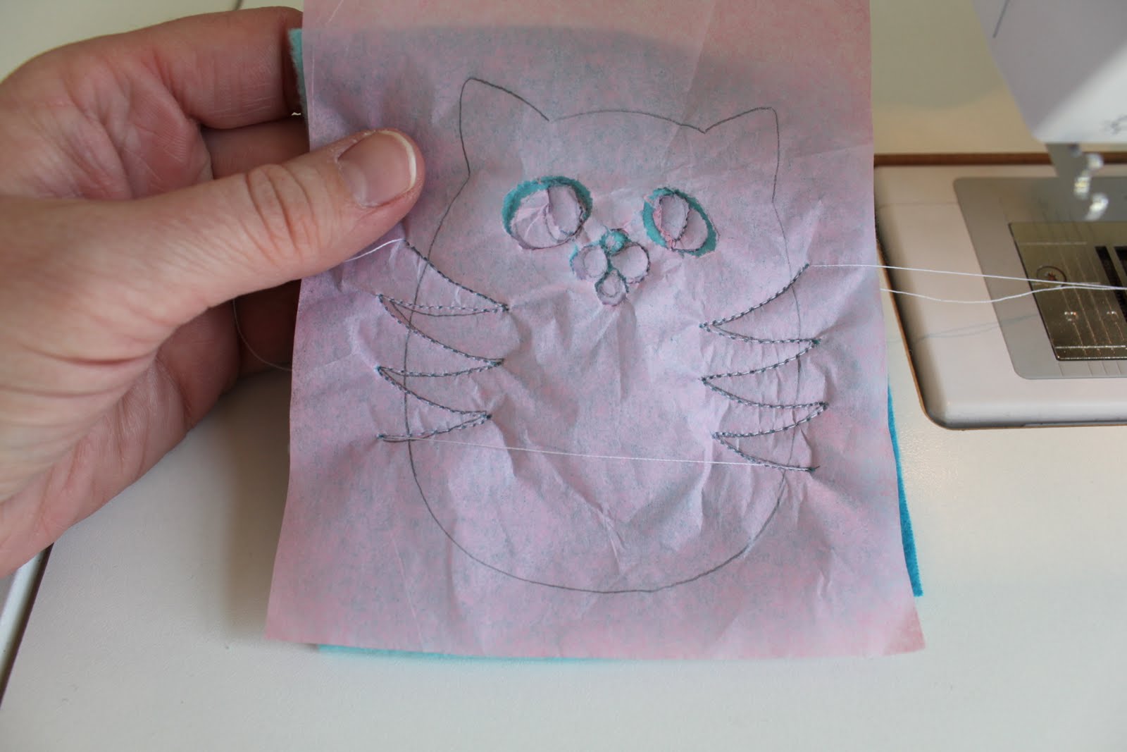 Шаг четвертый: Сшейте вокруг глаз и щек / подбородка. Я использую свой свободного движения ноги для этого, но если у вас нет того, Вы можете сделать иглу вниз-Лифт-футов и поворотом маневра.