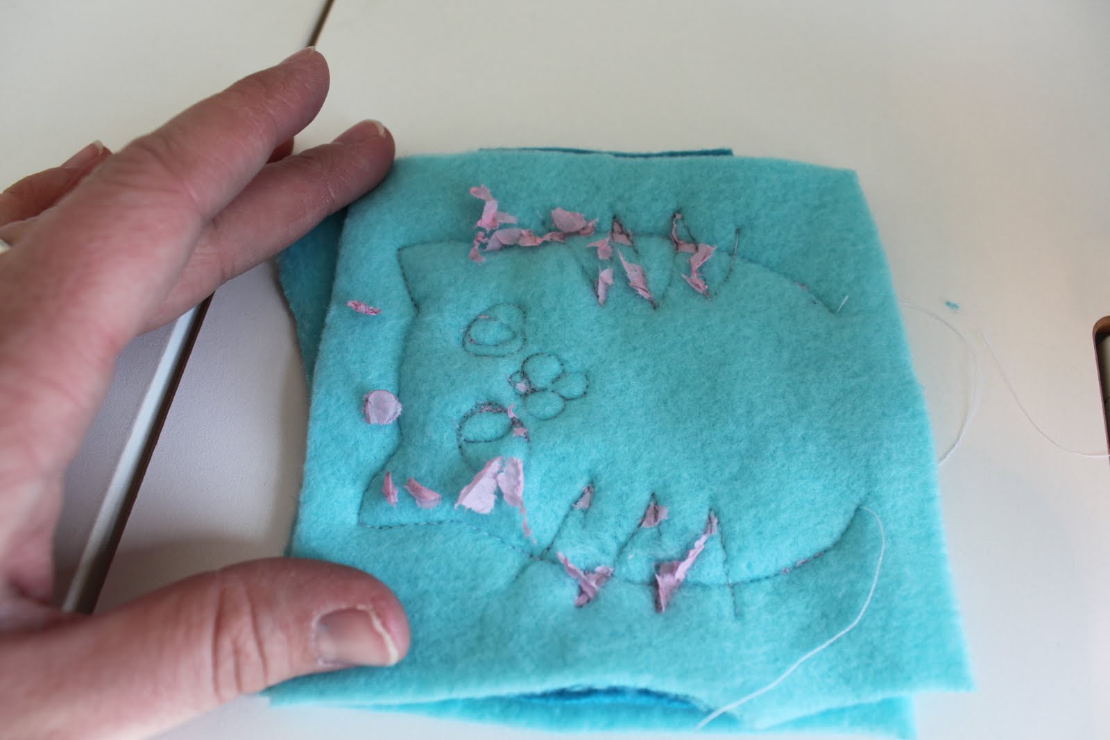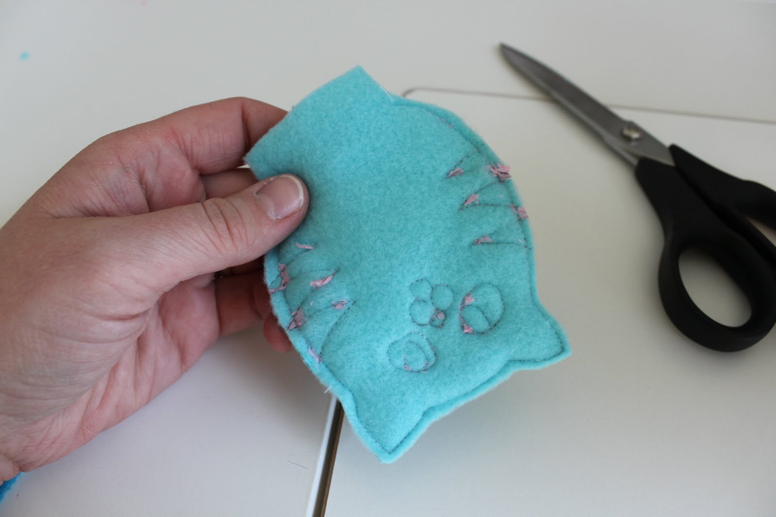 Шаг пятый: с помощью ножниц, Аккуратно обрежьте избыток флис от вокруг вашего сшивания линий.