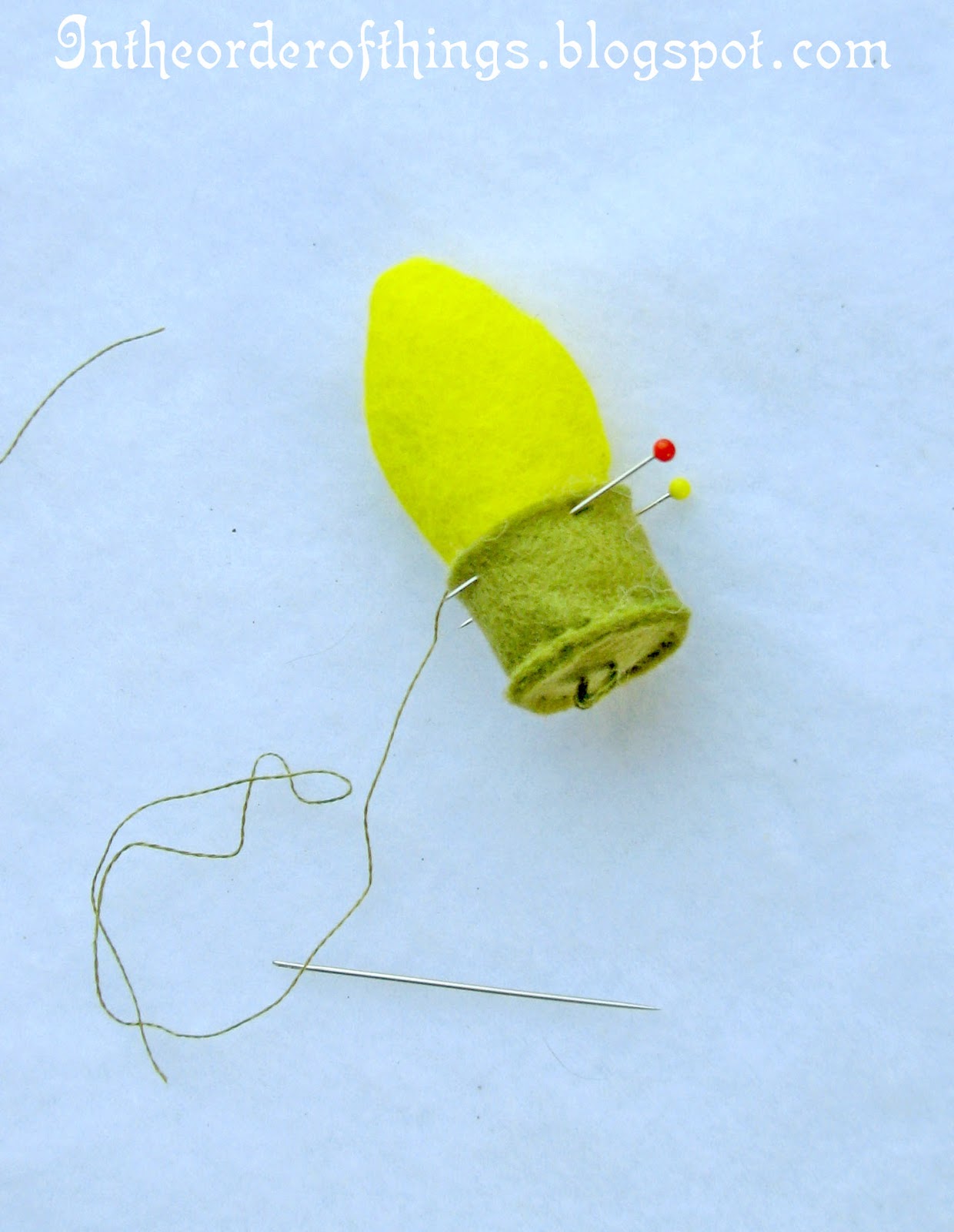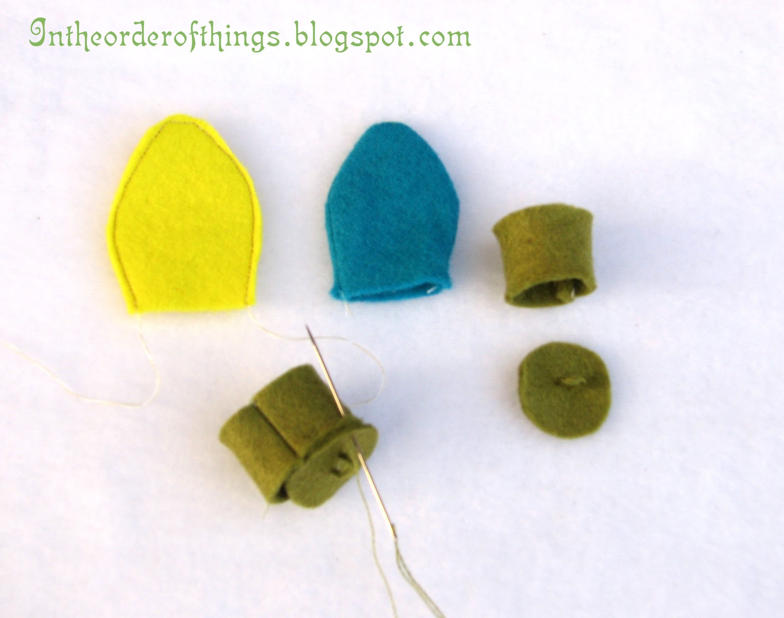 Прострачиваем очень близко к краю. Фетр материал очень хороший, так что не разлохматится (желтая заготовка). Далее выворачиваем (синяя заготовка).