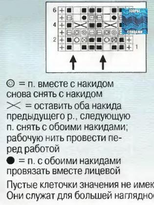 5 ряд - *1 петлю с накидом провязать вместе лицевой, 1 изнаночную снять с накидом*