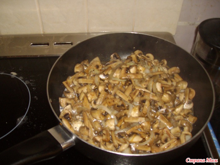 [показать] Грибы, лук, чеснок обжарить, посолить и поперчить.