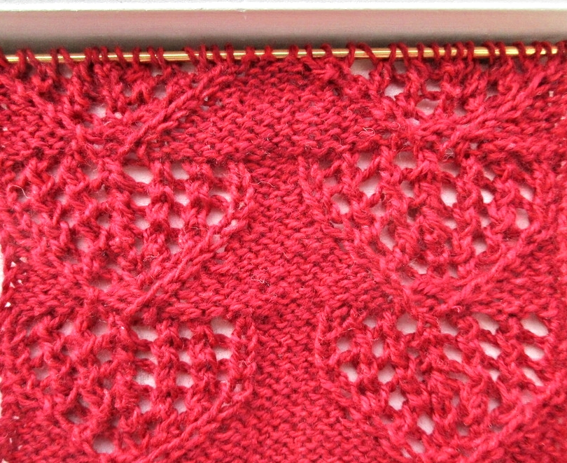 2 ряд-кром, 1 лиц,*подцепить только одну нижнюю створку поперечно лежащей петли и вытянуть из неё лицевую,3 вместе лицевой.*Повторять. В конце надо связать так: последний раз вытянуть петлю из створки, затем 3 оставшиеся провязать по отдельности лицевыми.