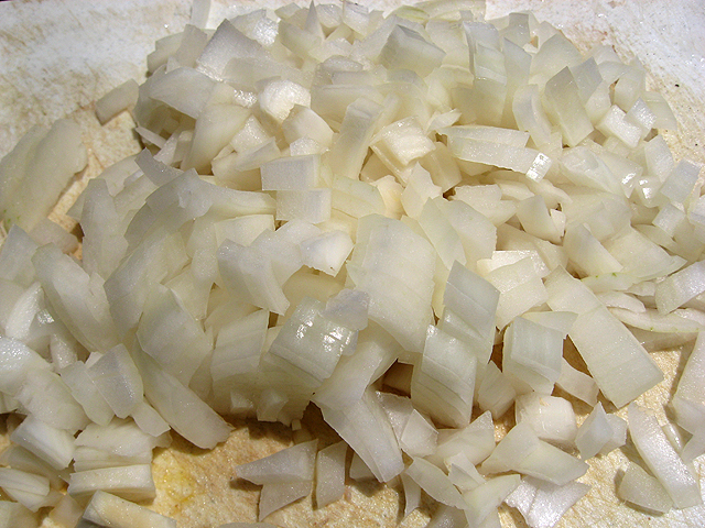 Режем лук средними кусочками