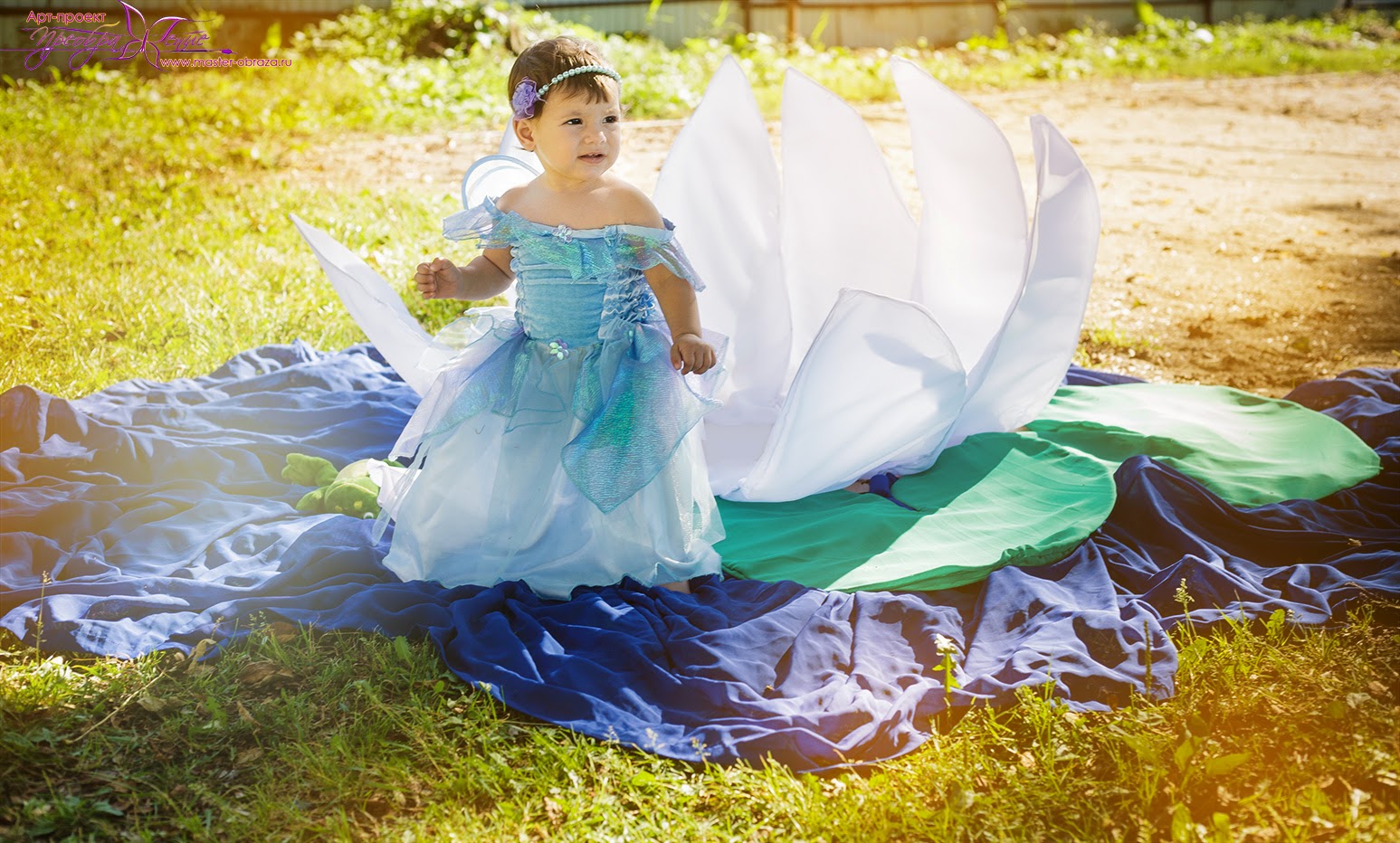 И самая маленькая героиня проекта “Дюймовочка” (Лия 11 мес), девочка красавица, не смотря на свой возраст она из-за всех сил старалась и позировала, чтобы показать свою героиню с самых лучших сторон в своем красивом и белоснежный лотосе, который пришелся ей (и многим другим участникам проекта) по душе.
