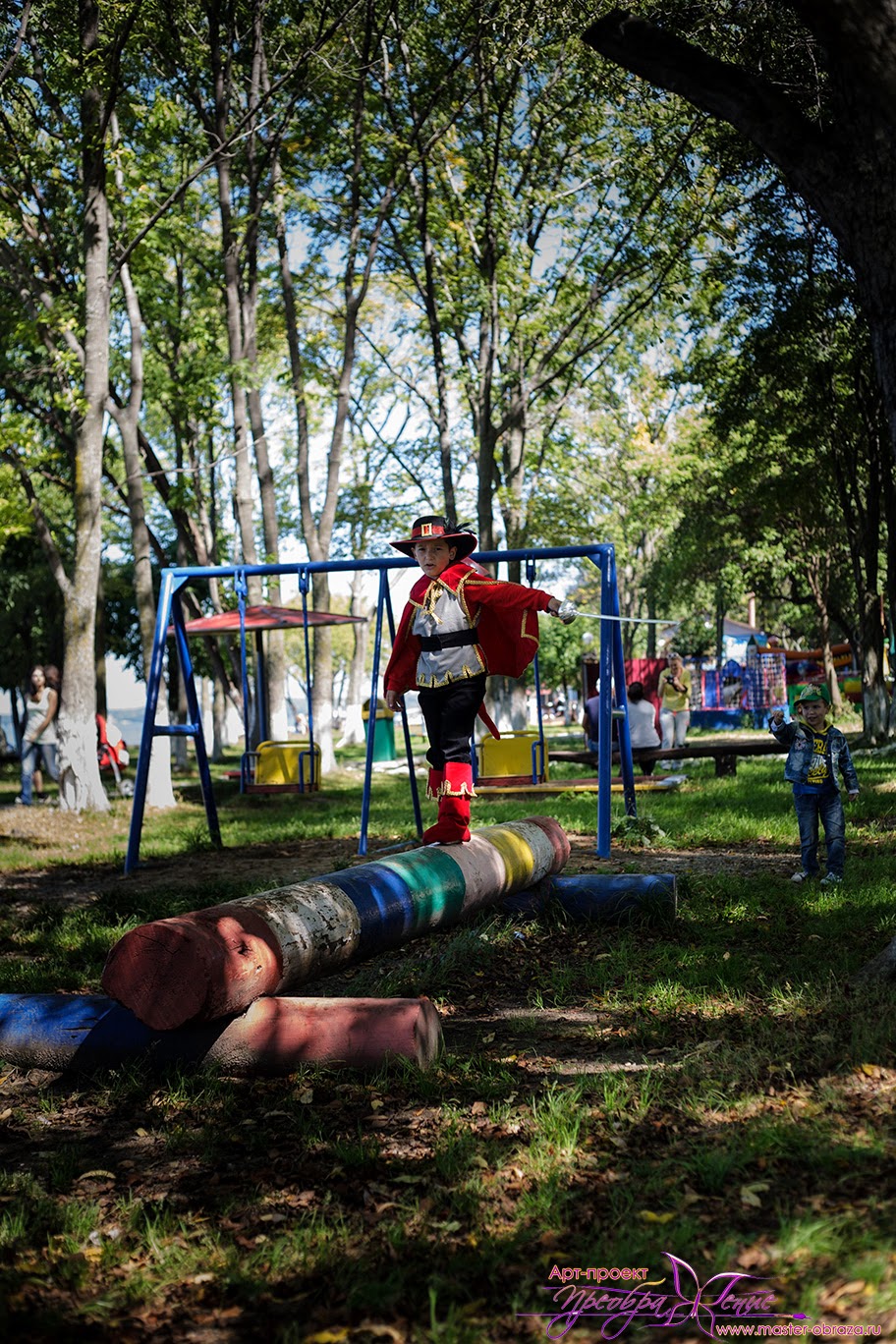 Потом появился "Кот в сапогах" (Ваня 6лет). Он прыгал по деревьям и размахивал своей огромной шпагой. Он был на столько отважен и хитер, что я, еле за ним поспевала.