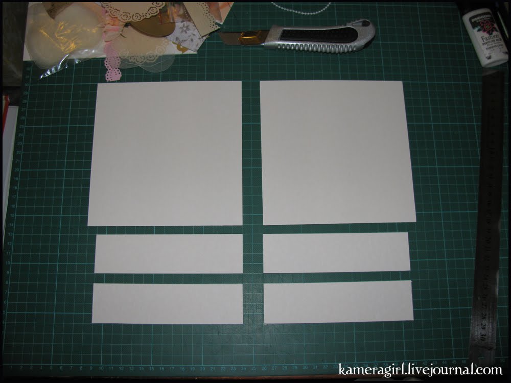 Определившись с тем что я буду делать и из чего, я расчертила и вырезала из плотного картона (толщиной 1.4мм) детали коробки, согласно эскизу - 2 детали 16*16см, и 4 детали 5*15см.