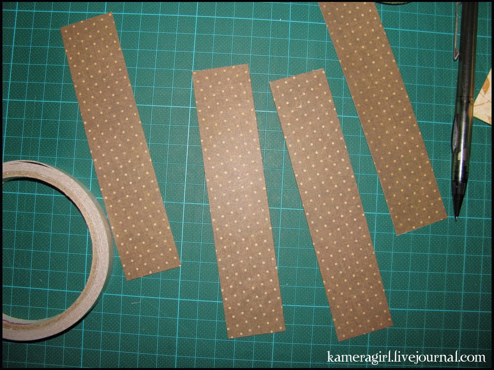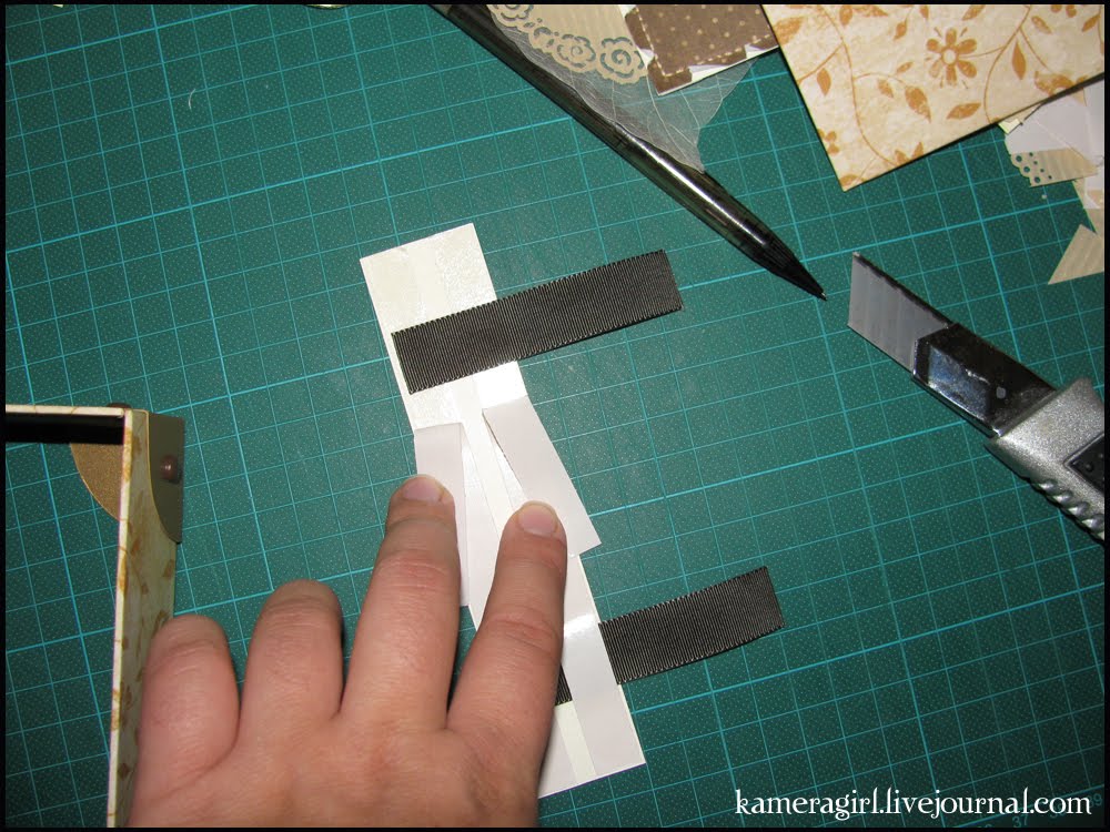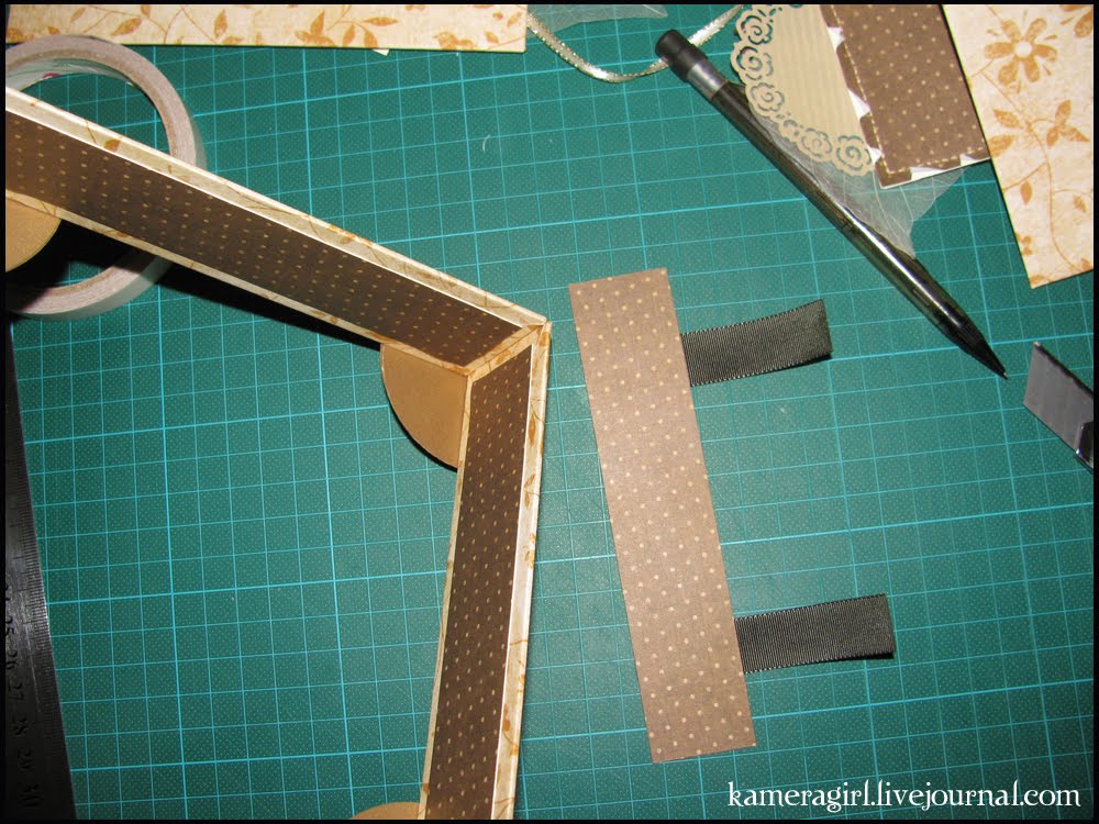 Потом я нарезала бумагу и начала оборачивать детали моей коробочки вот таким образом, используя двусторонний скотч для приклеивания бумаги к основе.