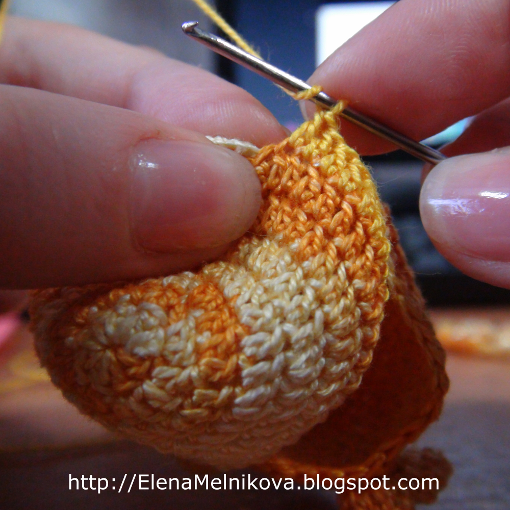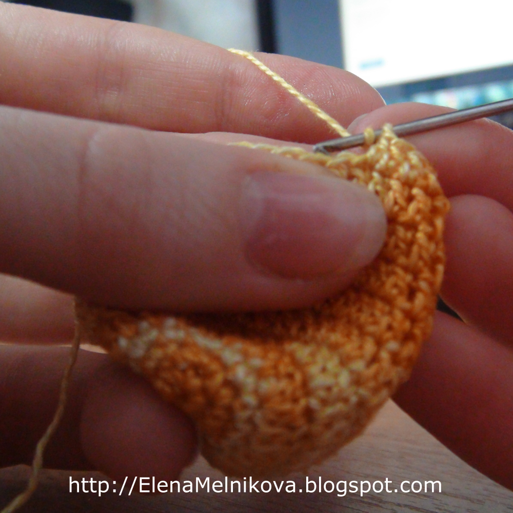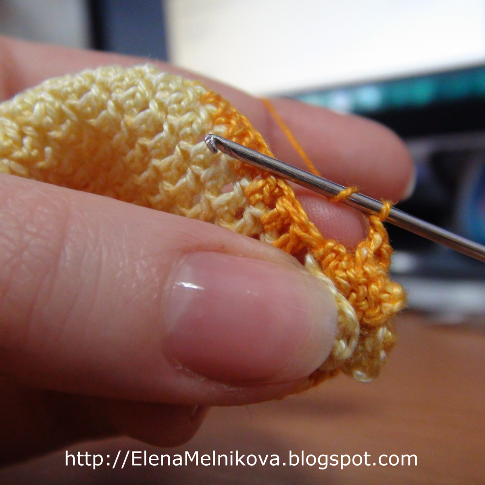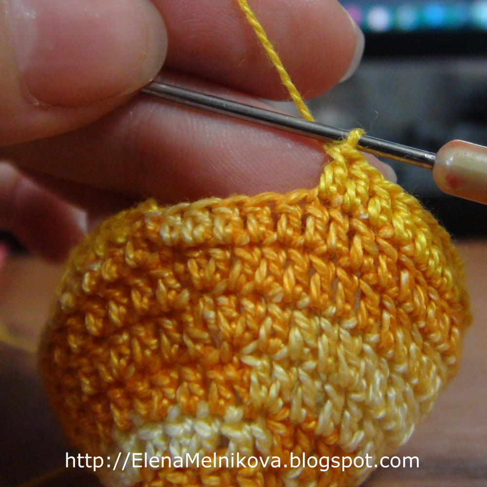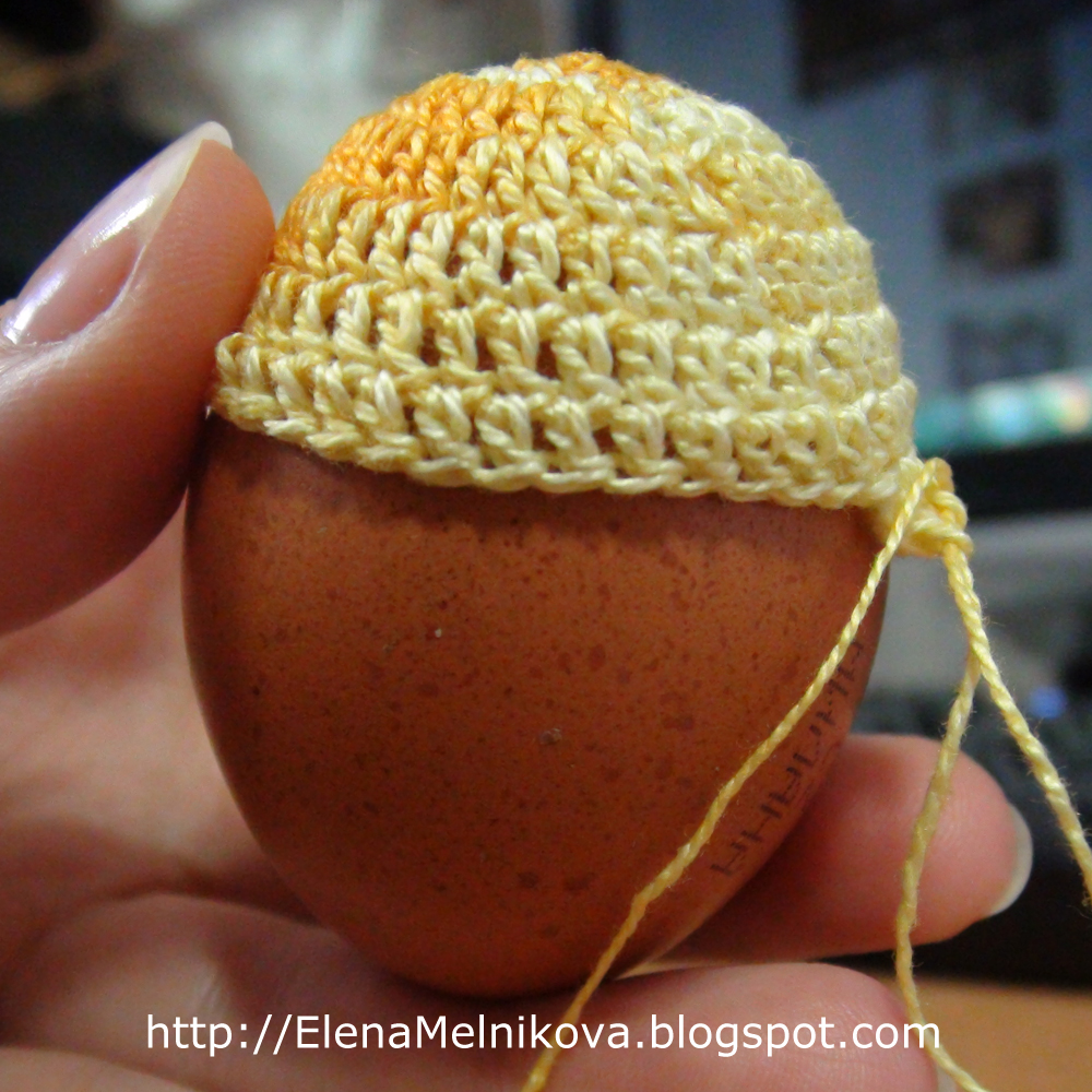 Следующие ряды я вязала столбиками с накидом, опять же потому что яичко небольшое, но если Ваше больше, просто еще ряд провяжите по схеме.