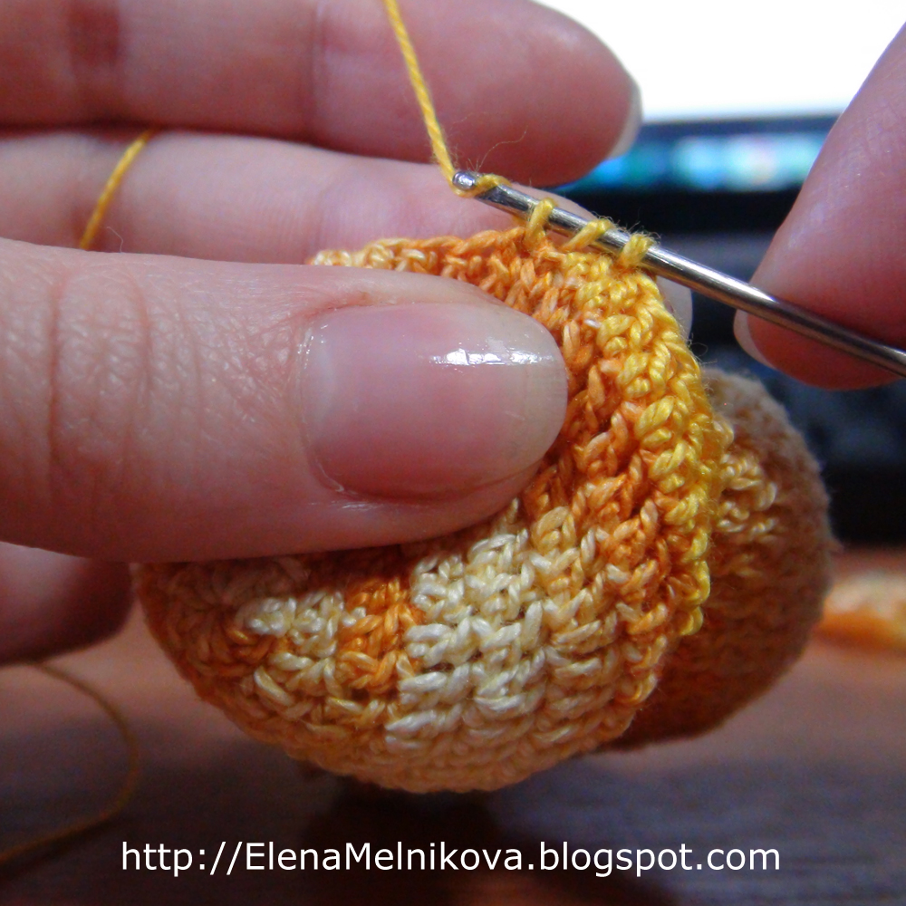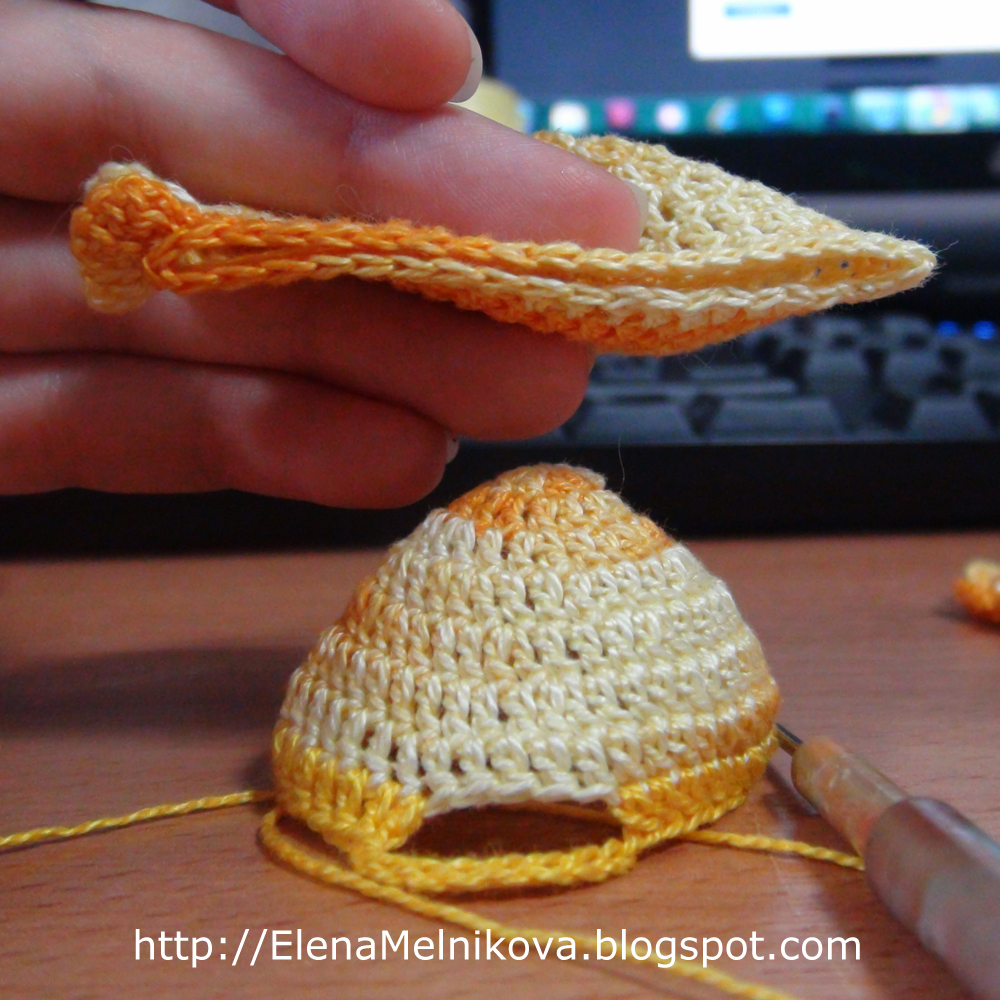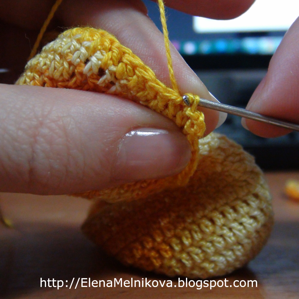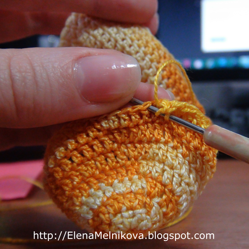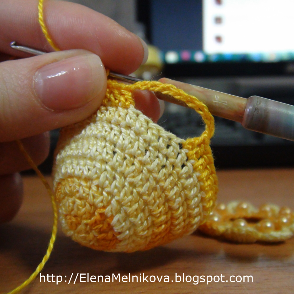 Следующие ряды я вязала столбиками с накидом, опять же потому что яичко небольшое, но если Ваше больше, просто еще ряд провяжите по схеме.