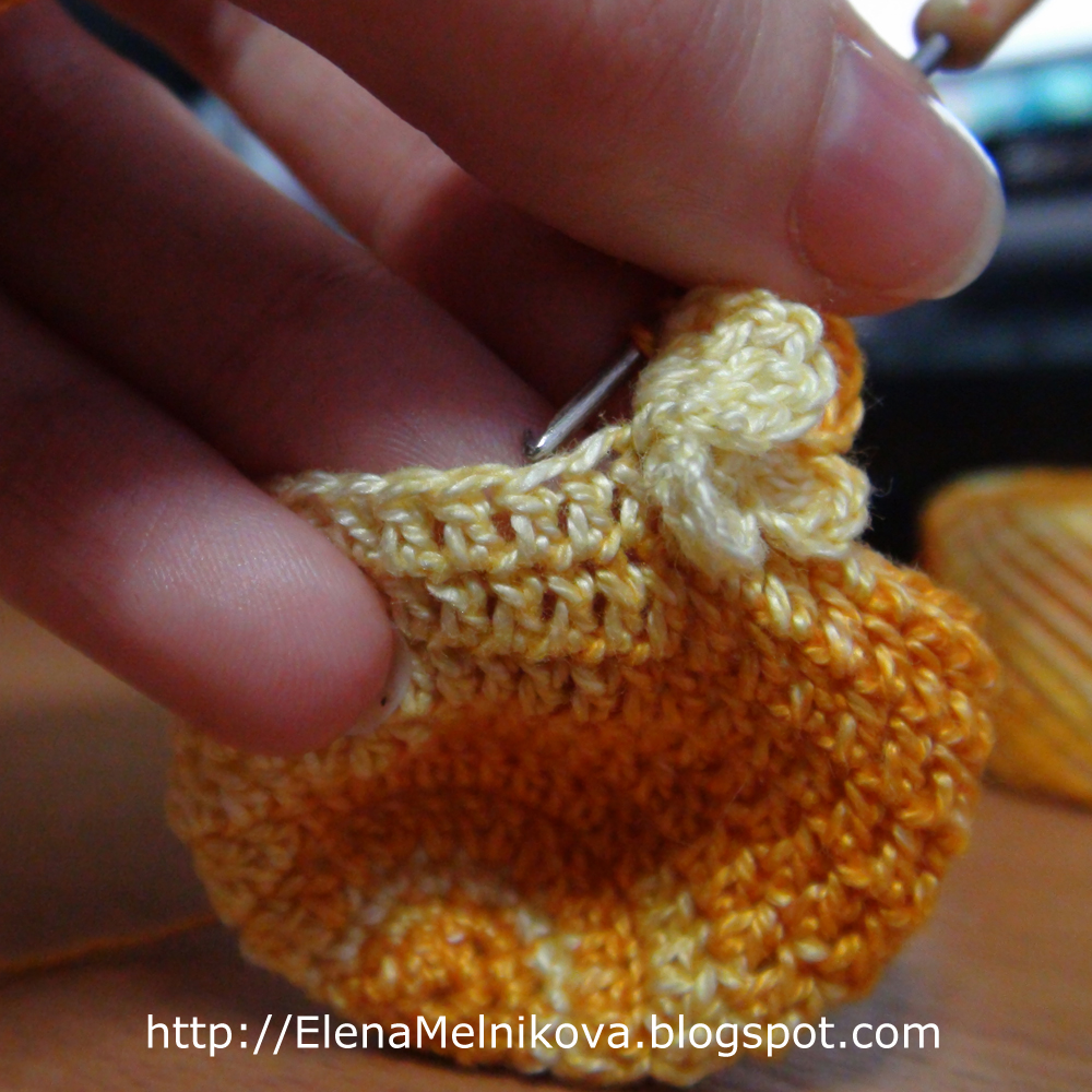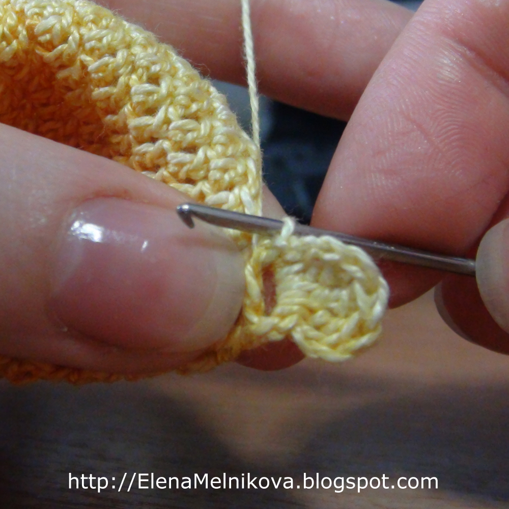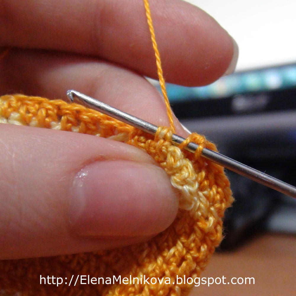 Замыкаем в круг. Второй ряд провязываем столбиками без накида в каждую в.п. Замыкаем.