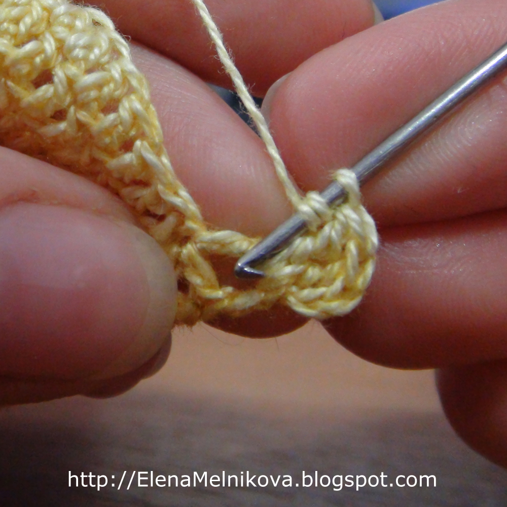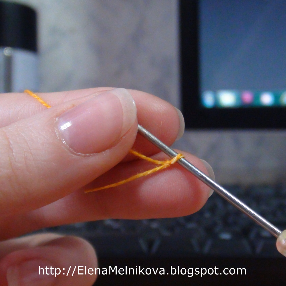 Если Вы взяли другую пряжу и она более толстая, не проходит в иглу, можно конец нити окунуть в ПВА, подождать пока высохнет и нанизывать как на иглу! )