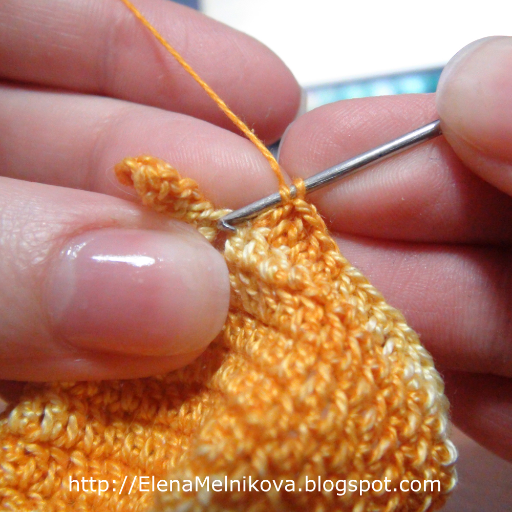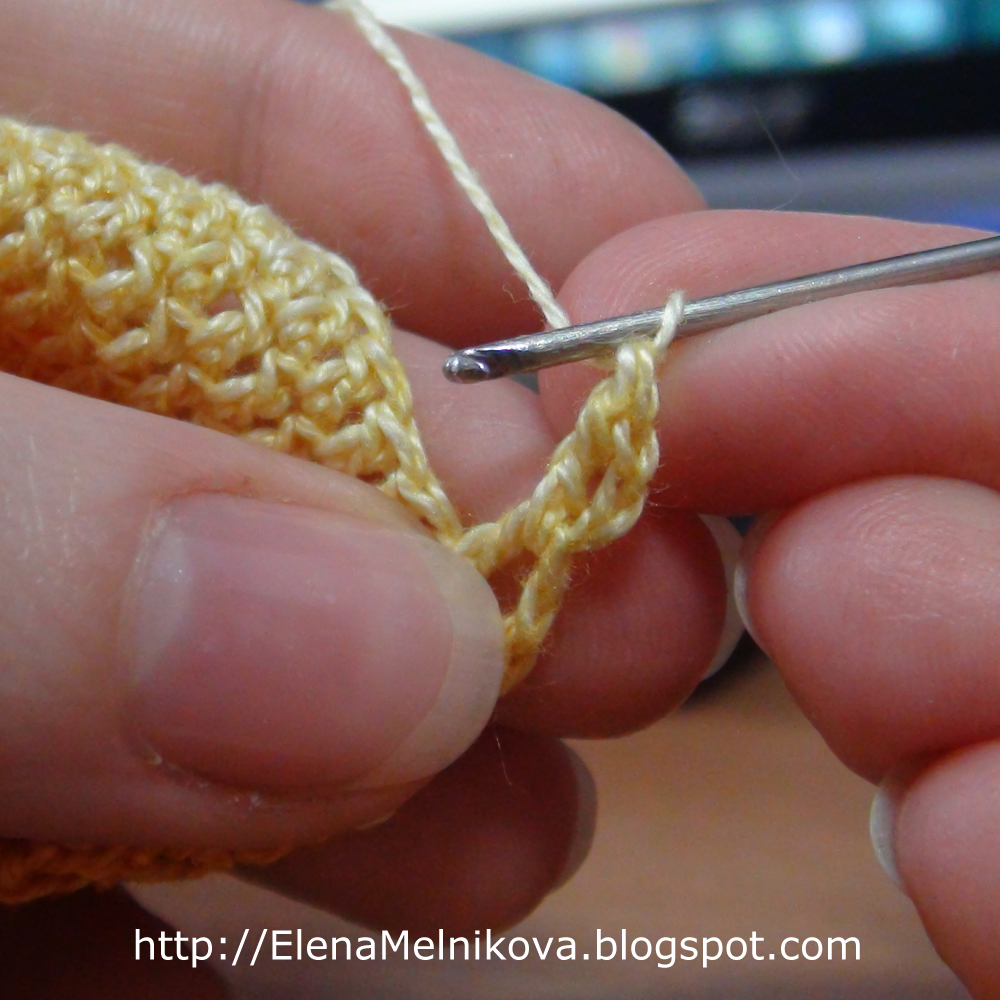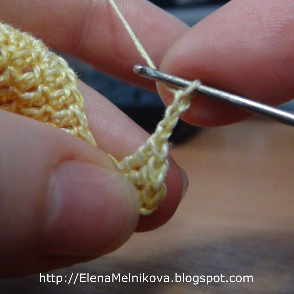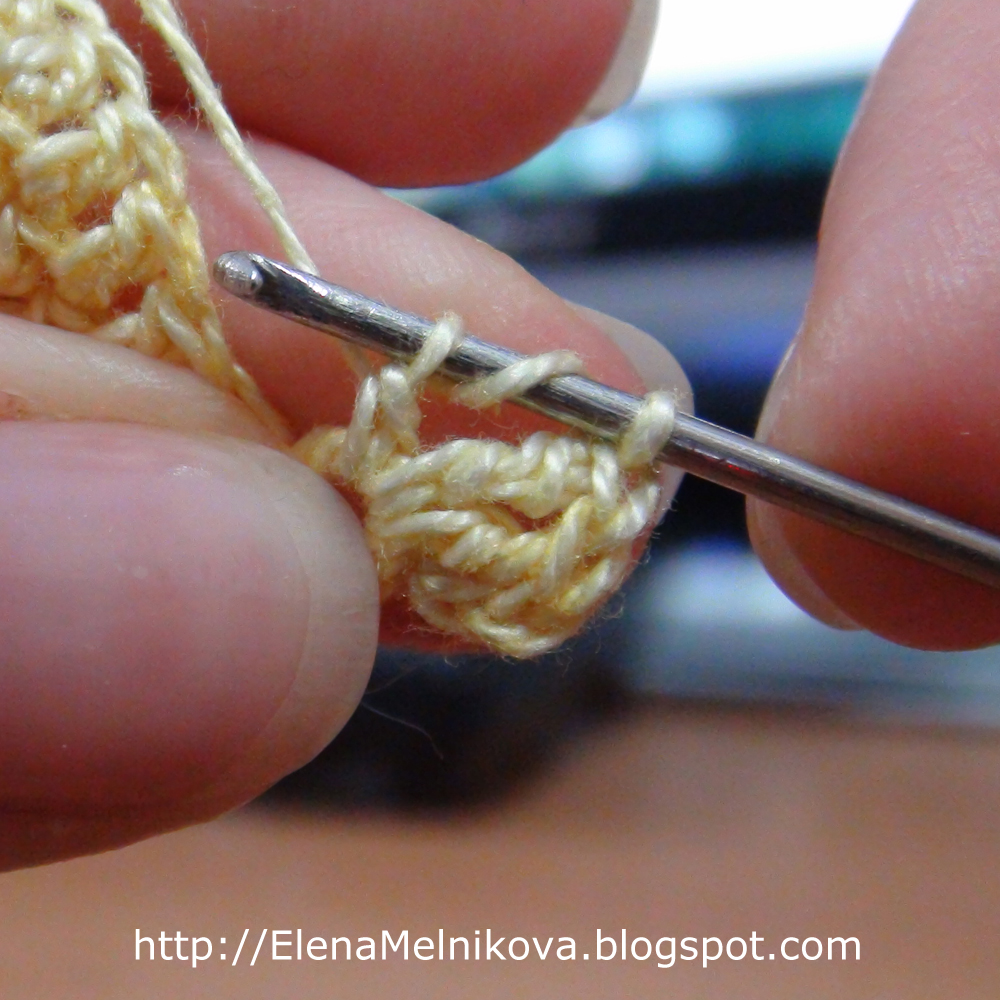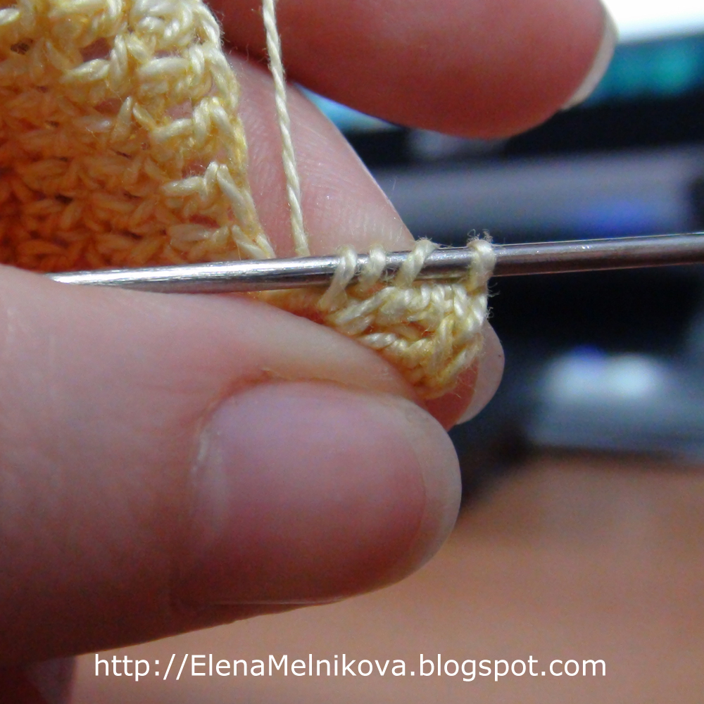 Теперь вяжем вдевая крючок в получившиеся петельки.
