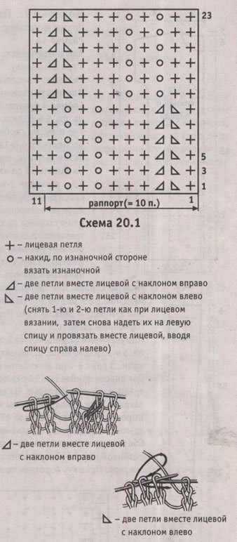 Узор «КОСЫ»: На 29 п.: вяжите по схеме. В ней указаны только нечетные ряды. В четных рядах вяжите петли по рисунку. Повторяйте ряды 1 -8.