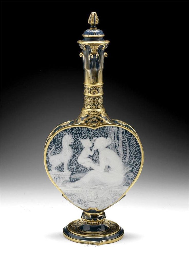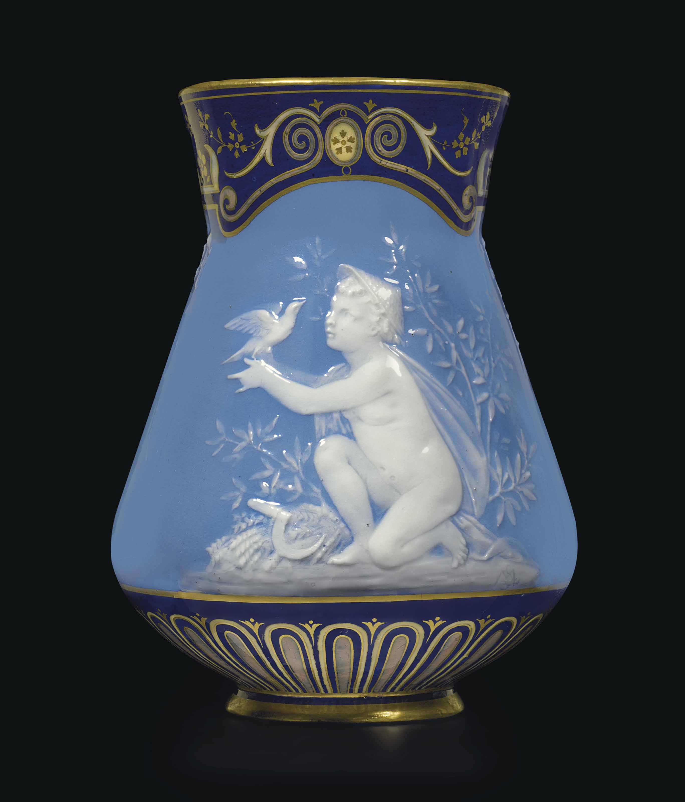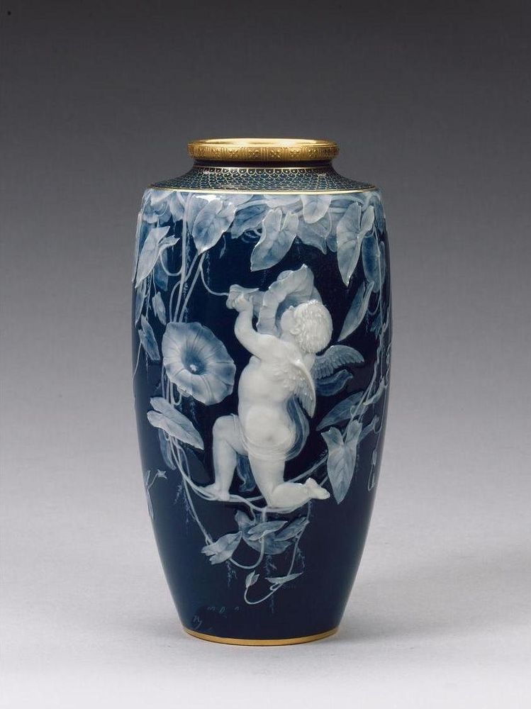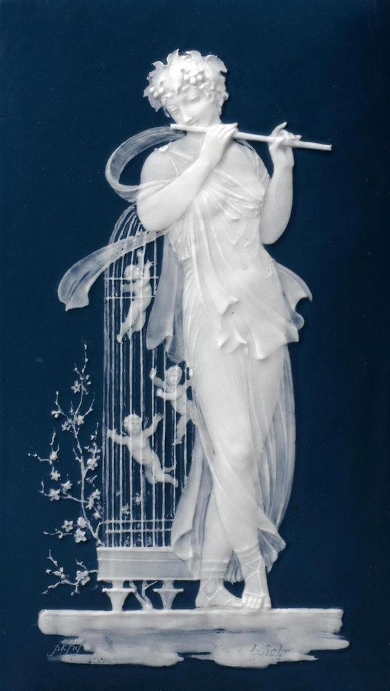 В 1849 году на Севрской фарфоровой мануфактуре во Франции была разработана техника декорирования фарфоровой поверхности под названием «pâte-sure-pâte» Её изобретатель Луи Роберт. Художник - керамист Марк Луи Солон смог в дальнейшем усовершенствовать технику, мотивами такого декорирования являлись по большей части аллегорические и мифологические сюжеты и персонажи. Mark Louis Solon был ведущим экспертом техники керамического декора pâte-sur-pâte и был одним из первых художников-керамистов в Европе, которые использовали эту технику.