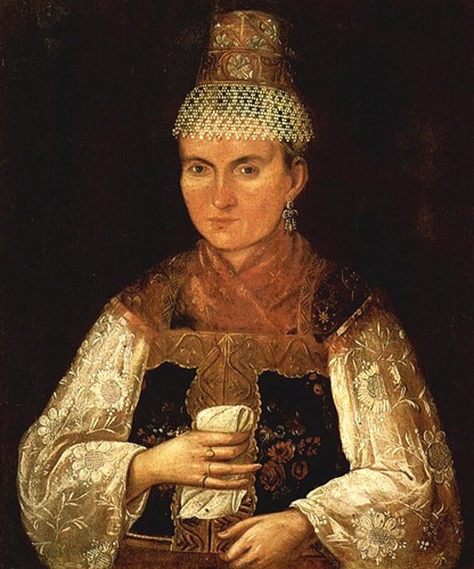 Купеческие женские портреты стали настоящей находкой для исследователей русского костюма. Однако, пока европейские академисты «наводили» своим моделям чувственный румянец и восхитительную белизну кожи, анонимные купеческие портретисты были беспощадны к своим моделям и стремились скорее к точности, нежели к красоте изображения. Для купеческого сословия богатство было важнее привлекательной внешности, и потому художники документально выписывают каждую бусинку и пуговицу – но столь же внимательны они к морщинам, отвисшим подбородкам и бородавкам. Купеческий портрет – пожалуй, одно из самых демократичных явлений в искусстве, ведь он утверждает право людей, неблагородных и некрасивых, быть воплощенными на полотне – такими, какими они были, без лести и украшательства.