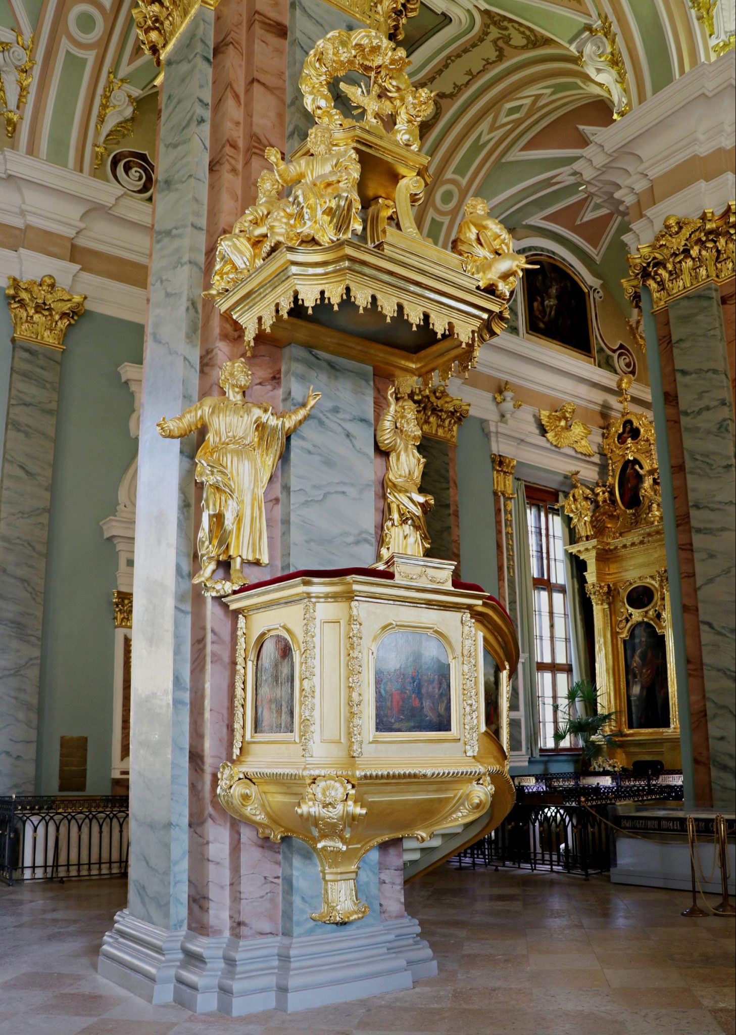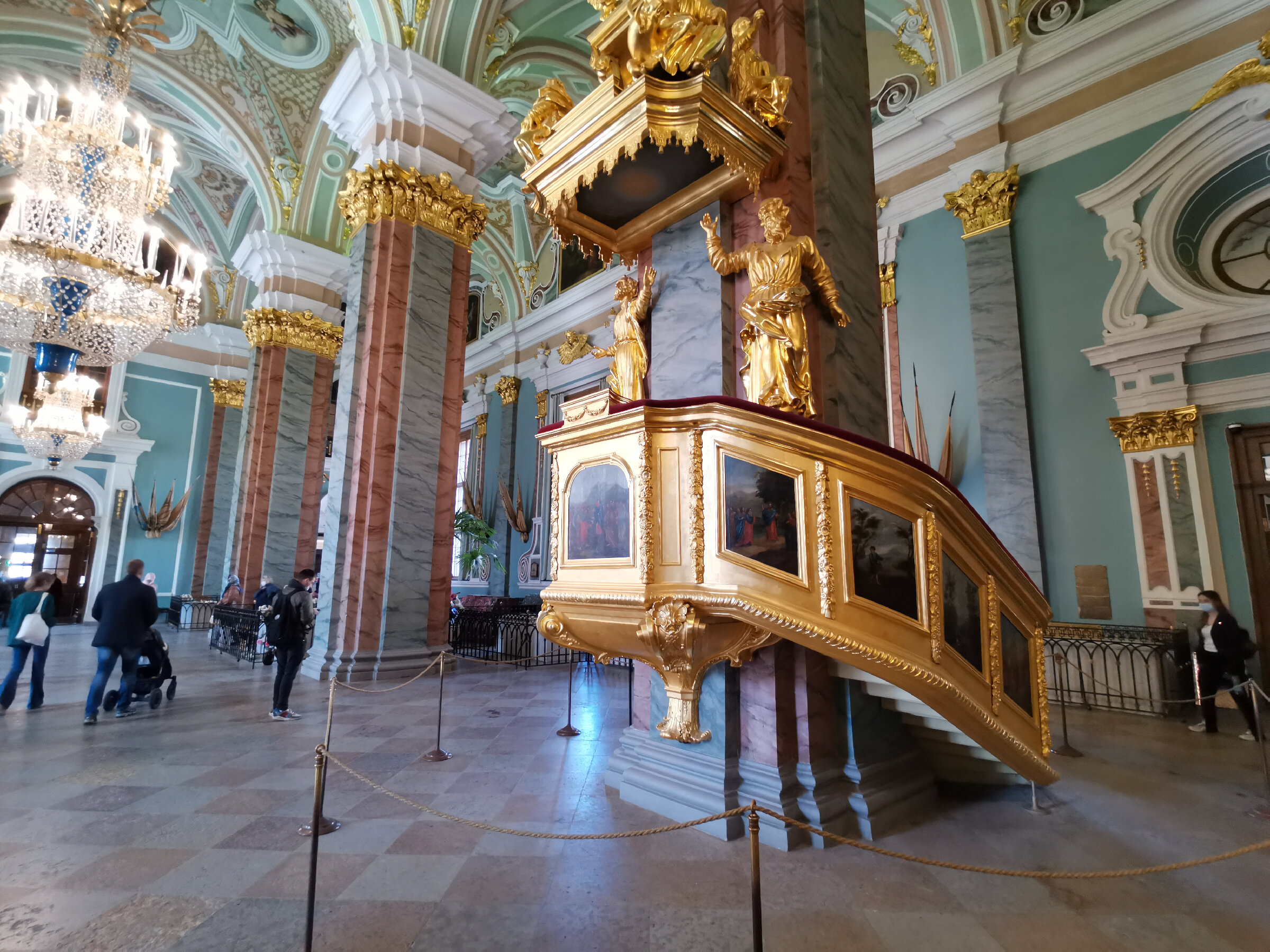 Перед алтарем установлена кафедра для произнесения проповедей. В православных церквях практика чтения проповедей прежде не существовала. Впервые она была введена в царствование Петра I.Симметрично кафедре находится царское место — помост, где во время богослужения стоял император.