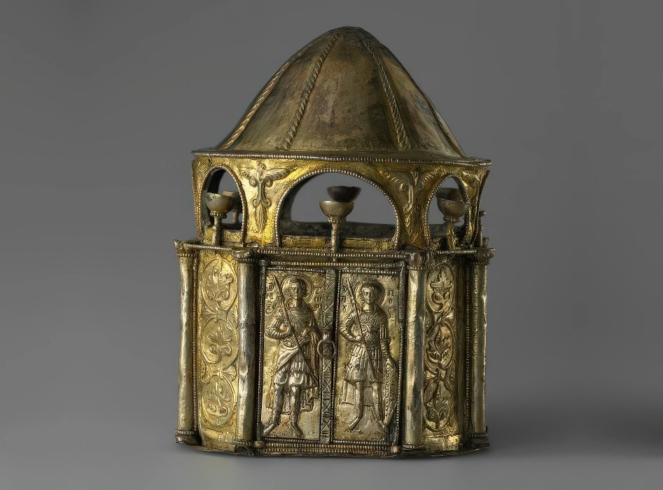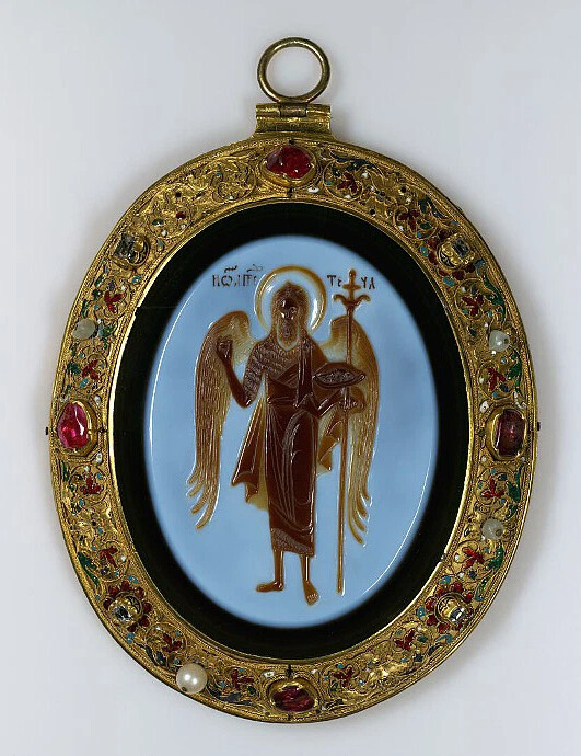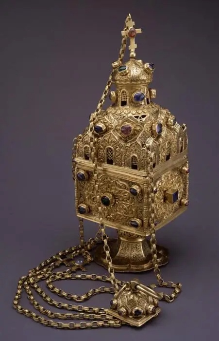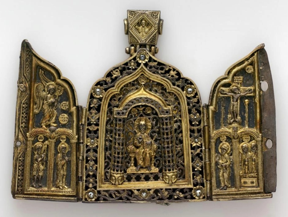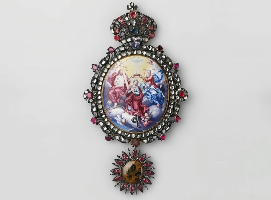 Здесь создается полная иллюзия, что перед нами интерьеры храма. Есть даже люстры и иконостас... Эта отделка копии интерьера Успенского собора выполнена на стеклянной пластине, которая по дуге расположена напротив одного из окошек. Так было создано ощущение внутреннего убранства этого драгоценного сюрприза.