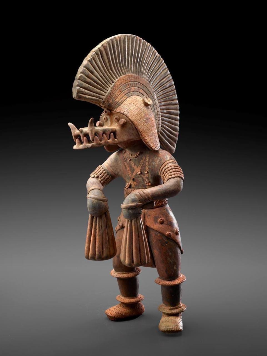 Терракотовый танцор со съемным шлемом в виде головы крокодила. Культура Колима, 300 год до н. э.