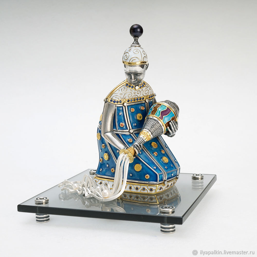 Украшение интерьера - ювелирный сувенир "Стрелец" серебро 925, золочение, мельхиор, вставки: сапфиры, изумруды, горячая эмаль, жемчуг. Фигурка имеет тайник. Дальность полёта стрелы 3 метра.