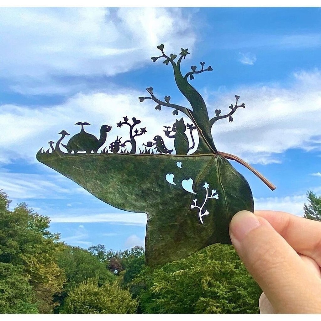 Дневник Xудожник Лито вырезает картинки на опавших листьях | tantana - Дневник Tantana |