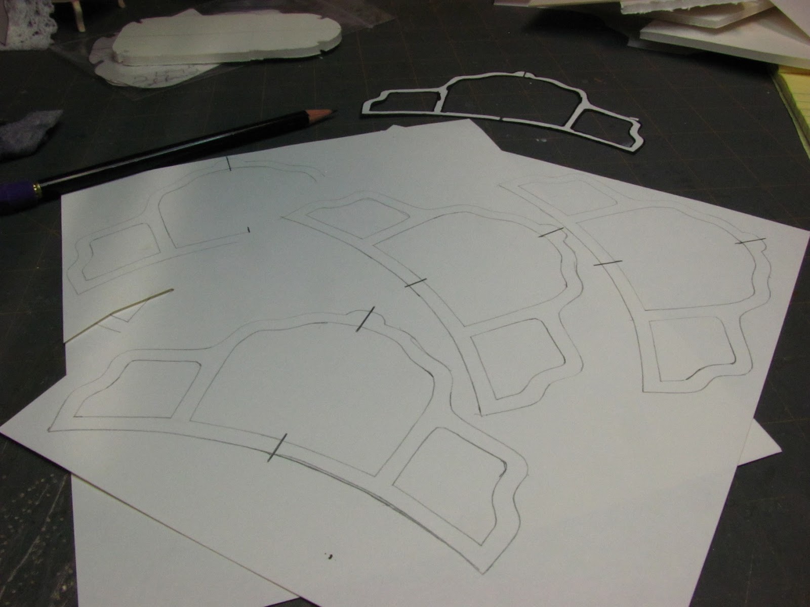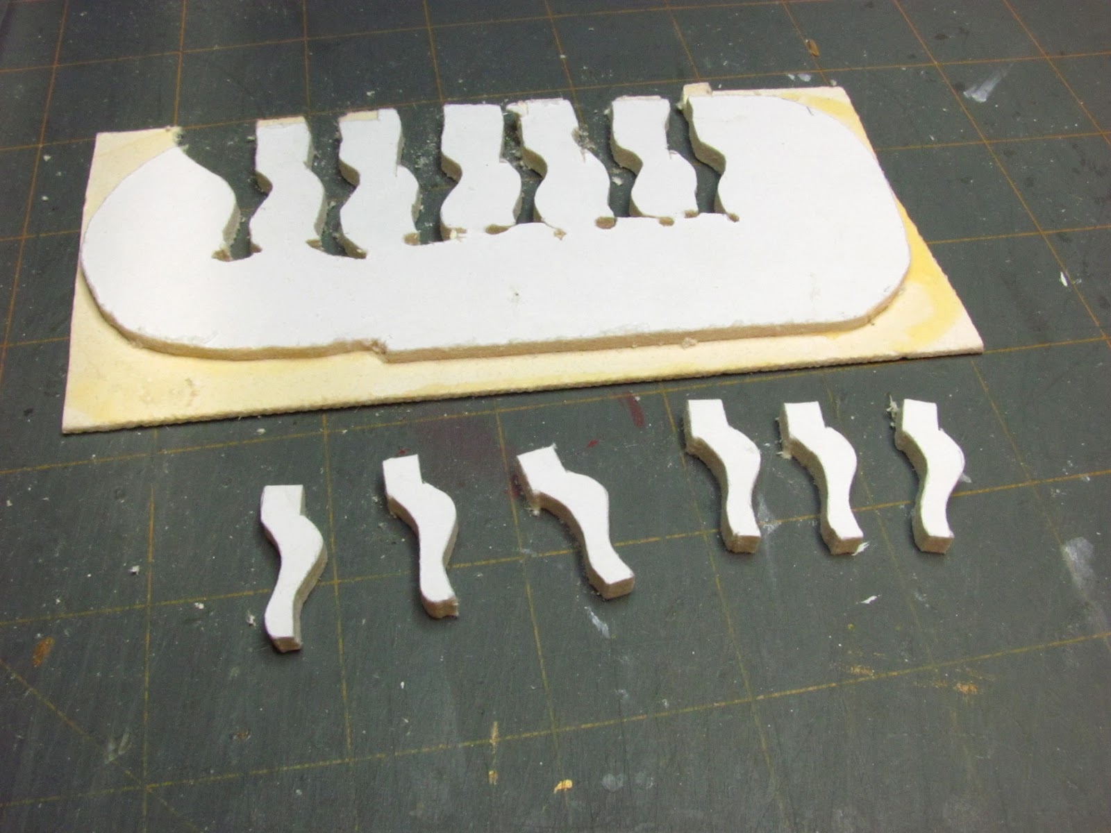 If you are using a craft knife you will need to trace the leg onto mat board 18 times, 12 times if you are using only 4 legs. I know, that's a lot of tracing. You could copy the leg pattern onto paper using the printer and glue the paper onto the mat board and then cut out the leg pieces. This will take time, but I think it's worth it. Take your time, take a break and come back to it.
