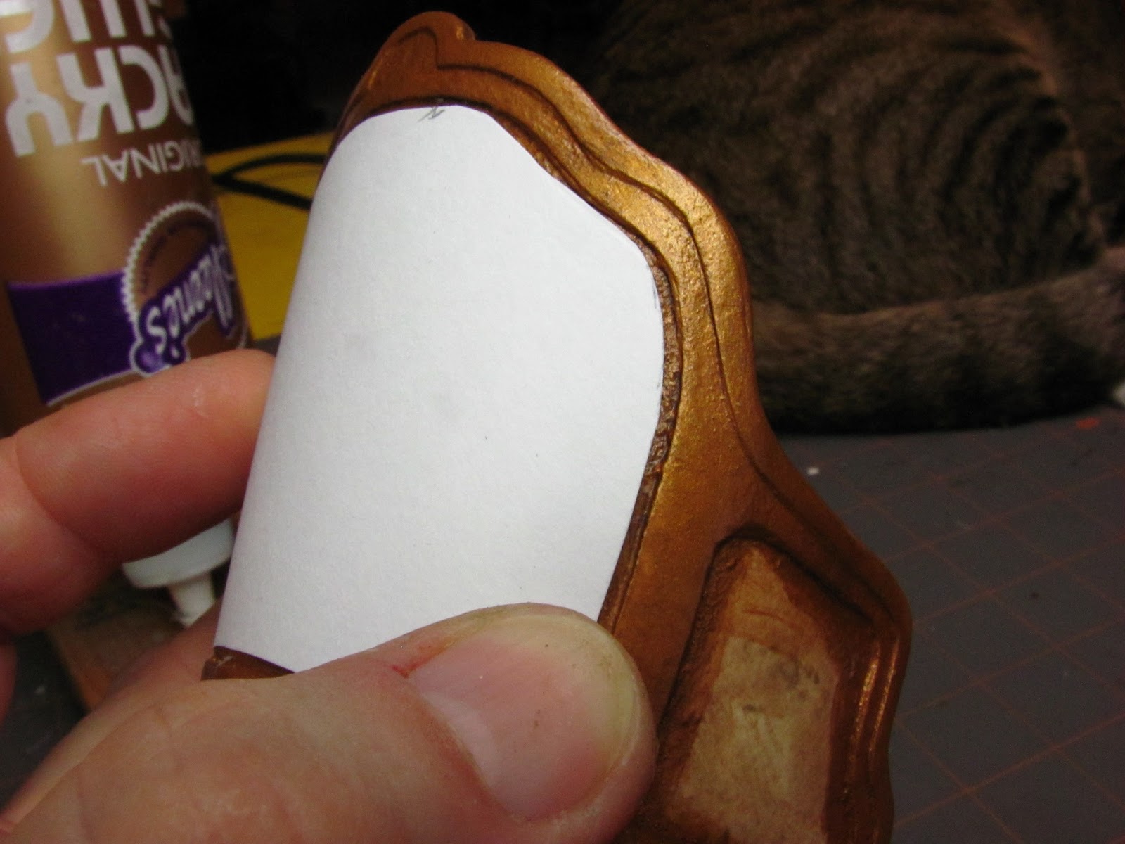 Keep a wet rag close and keep your fingers clean. Glue on the fingers will make the card stock back frame stick to you.