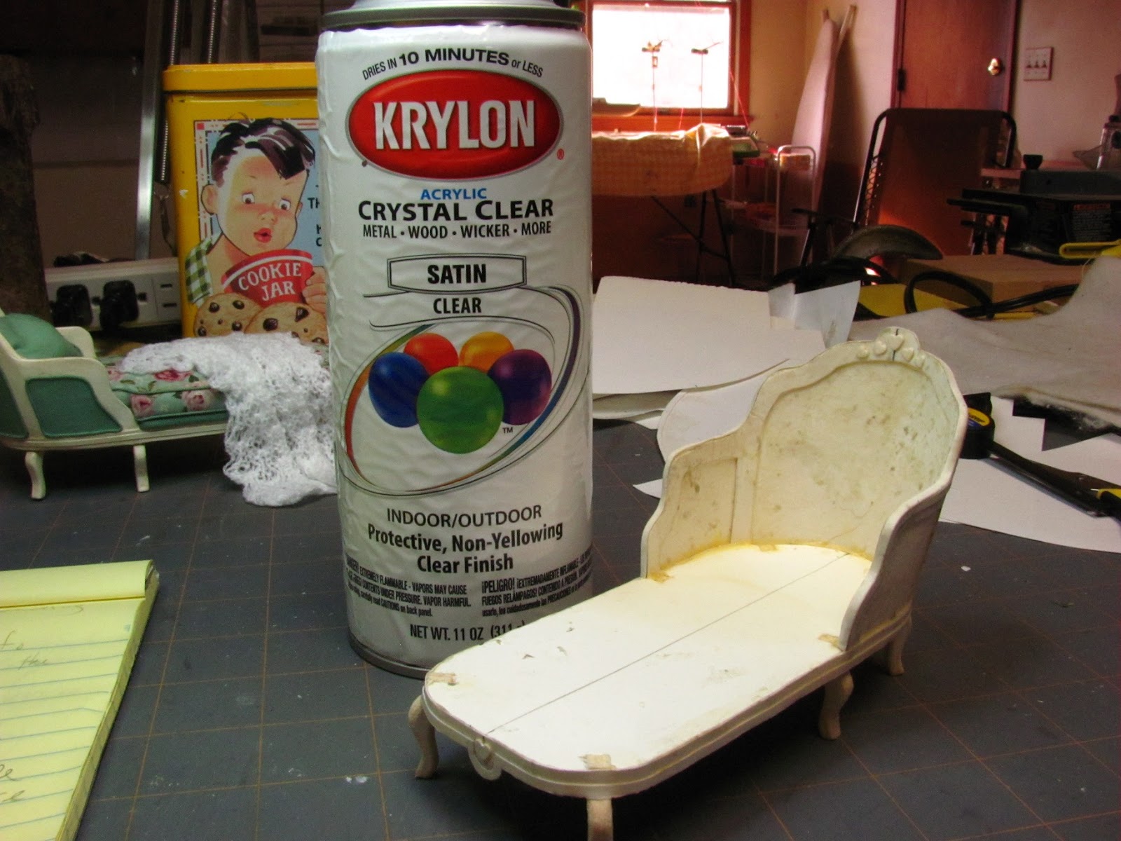 When I was satisfied with the surface I sprayed the chaise with the Krylon satin to finish.