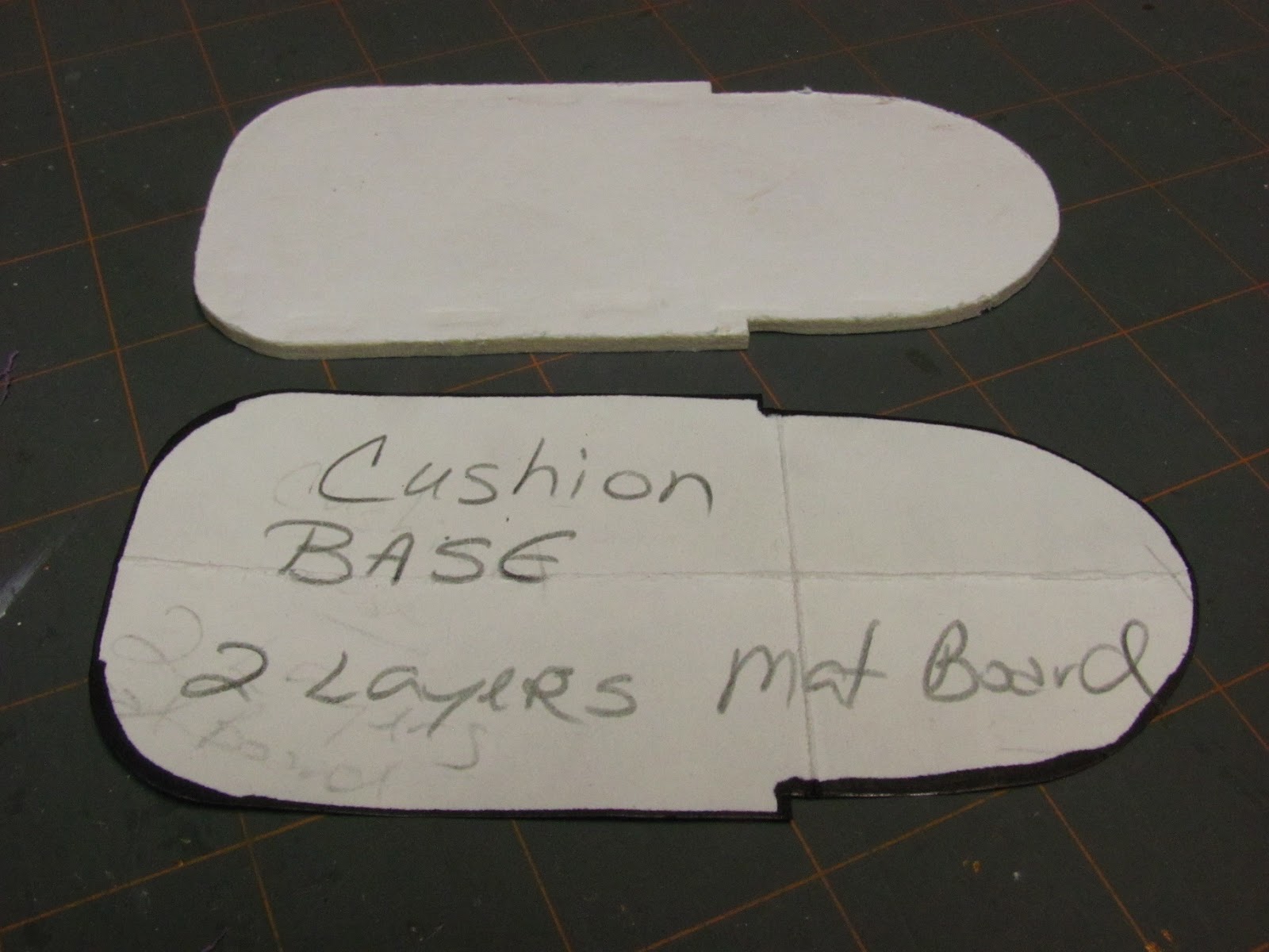 Use your cushion base pattern to trace onto 2 pieces of mat board the cushion base.