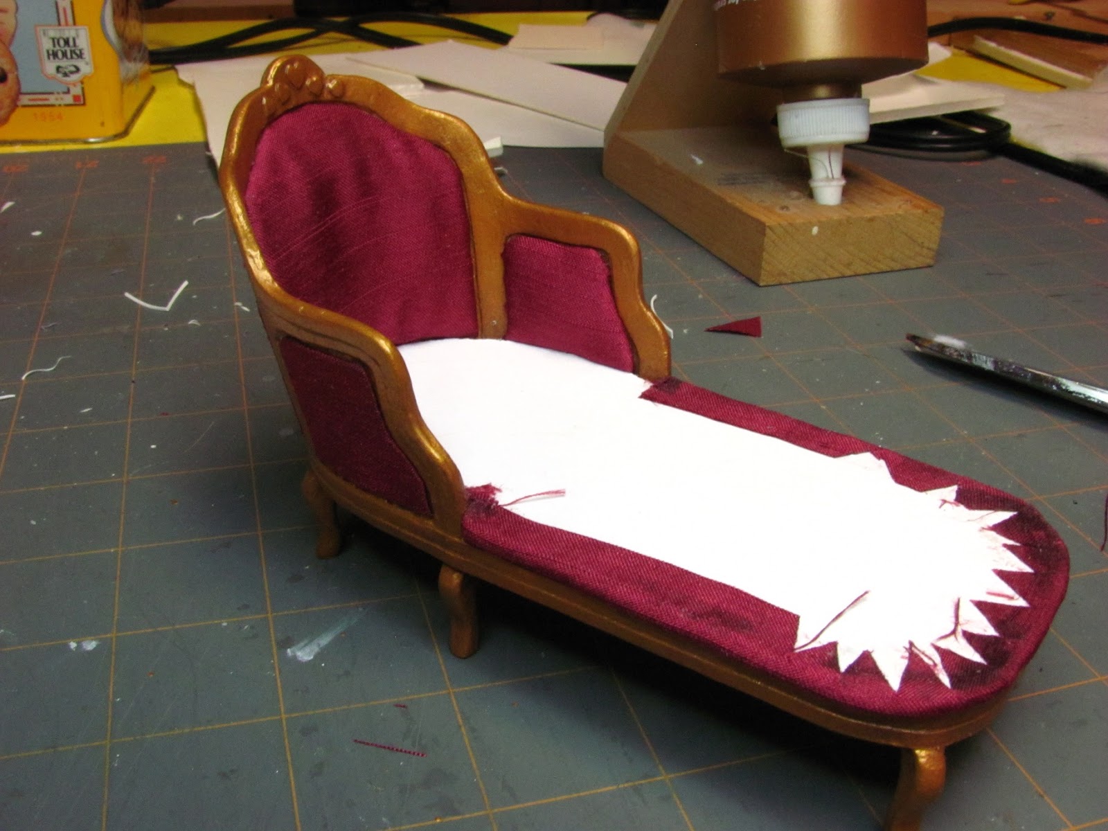 Glue the center back into the back of the chaise.
