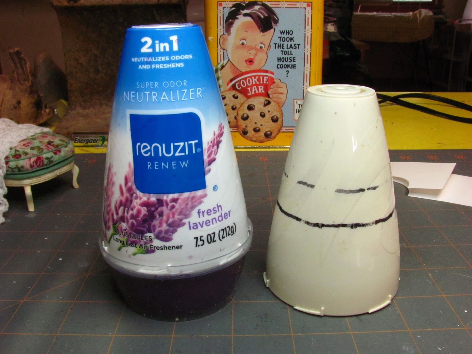 When the back is stiff take it off the form (top of air freshener container) and place it onto the base matching center lines. I know I don't have one drawn, but you do!