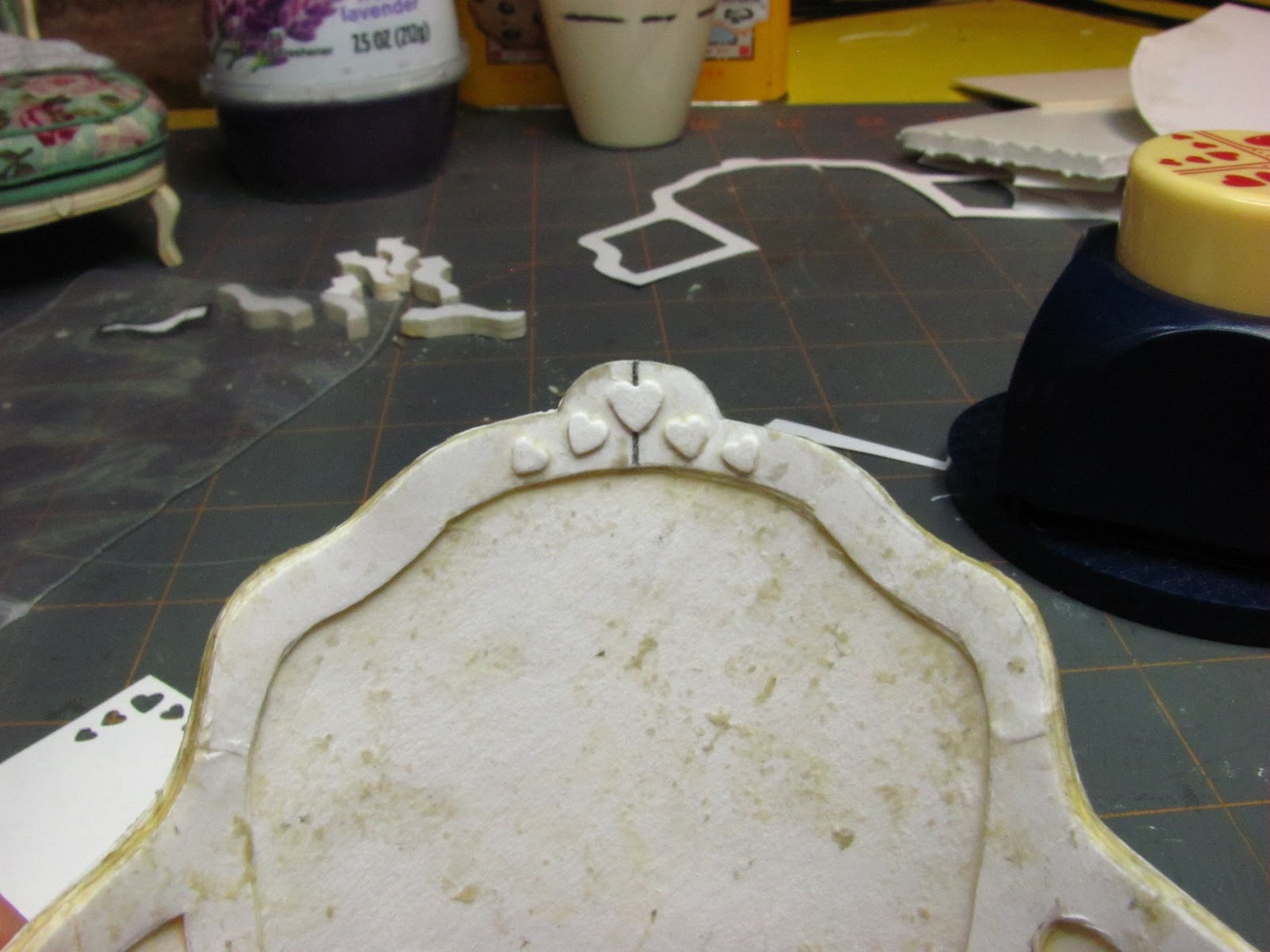 Next, I punched out a heart for the center and cut a narrow strip of card stock to fit all around the base of the chaise.