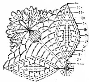 Для начала нужно набрать цепочку из 8 воздушных петель и замкнуть в кольцо. В него вязать 16 столбиков с накидом и далее по схеме 12 рядов.