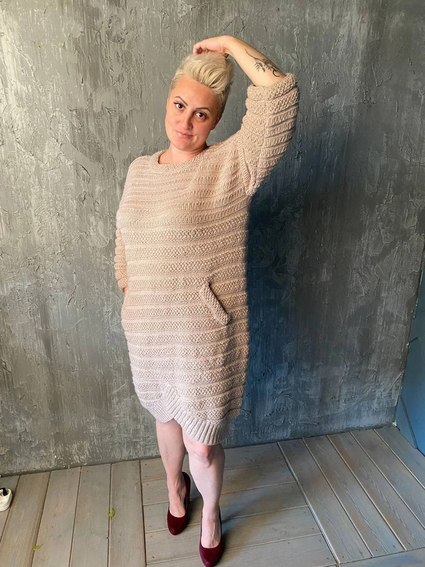 https://im.nitki.info/tutorial_steps/1347/1/resize/800-0/bf5_2x.jpeg 2x" style="box-sizing: inherit; max-width: 100%; vertical-align: top; border: 2px solid rgb(255, 255, 255); border-radius: 4px; box-shadow: rgb(198, 198, 198) 0px 0px 0px 2px;" xoriginal="" />Набрать 145 петель спицами 3,5. Сразу начать прибавления в начале каждого ряда 5, 4, 3, 2, 2, и 31 раз по 1 петле (итого = 239 петель). Далее вязать прямо 4 полосы рисунка. Соединить вязание и далее вязать по кругу. Связать еще 4 раппорта рисунка с плотными полосами и начатьвывязывать карманы: сначала вязать центральную часть (93 петли). Вывязываем скос кармана, убавляя равномерно 16 петельс каждой стороны. Довязать оставшиеся петли, прибавляя в том же порядке, как и убавляли.