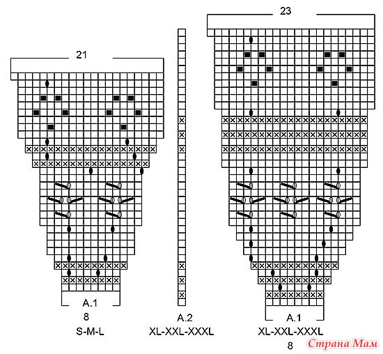 Схема узора: см. схемы A.1 и A.2. Выберите подходящую схему для вашего размера. Схема A.2 – только для размеров XL-XXL-XXXL.