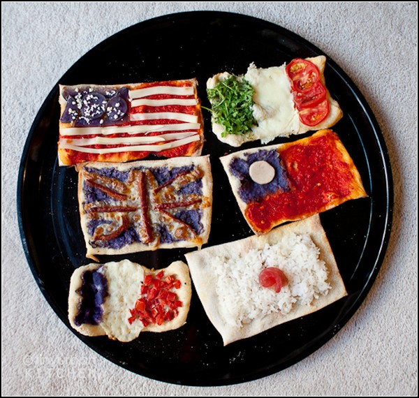 Пицца уже давным-давно перестала быть чисто итальянским продуктом. По всему миру практически в каждой семье есть свои любимые рецепты по приготовлению пиццы. Этой кулинарной глобализации и посвящен проект по созданию миниатюрных пицц в виде флагов различных стран от блога Tiny Urban Kitchen.