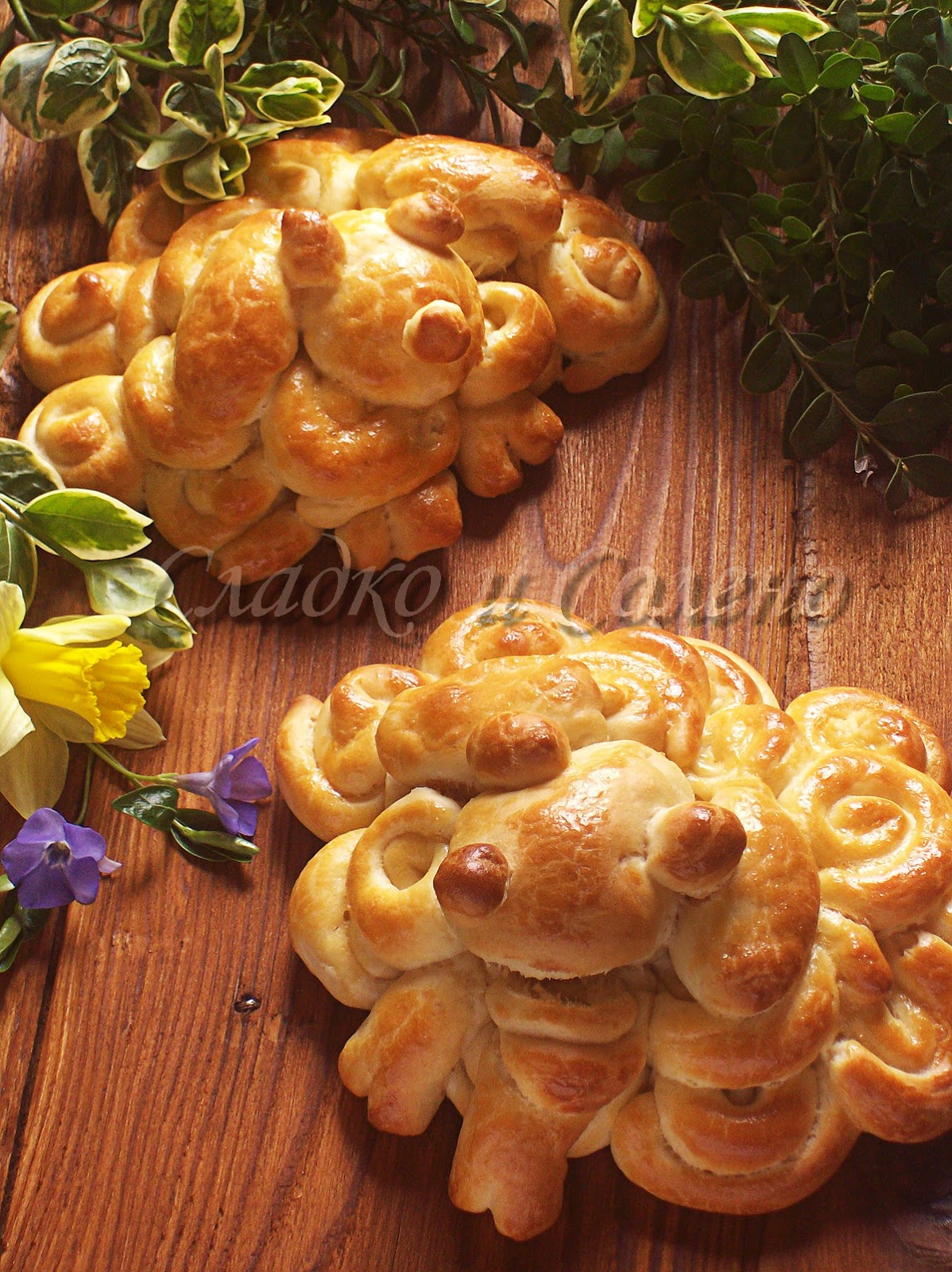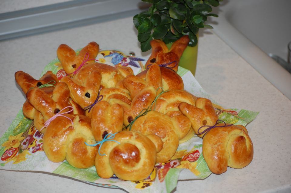 14. Смазываем зайчиков желтком и ставим в духовку на 15-20 минут
