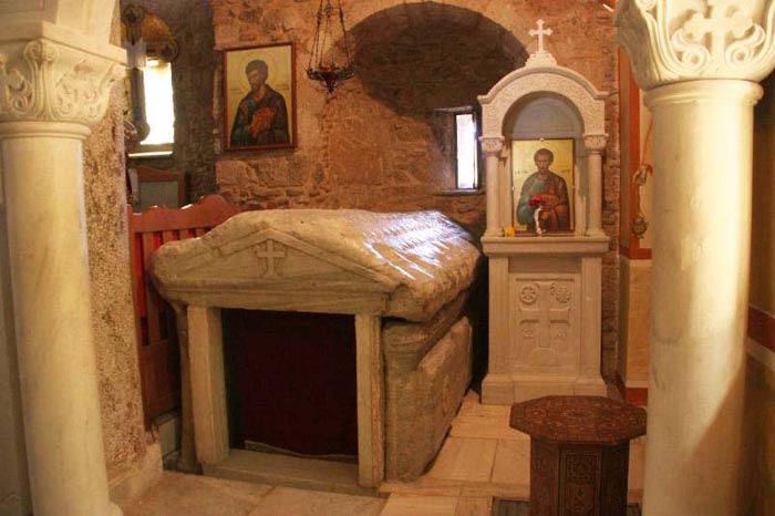 Святой апостол был похоронен в Фивах. Во время погребения Господь Бог послал на землю на могилу любимого ученика целительный дождь, благодаря которому люди мгновенно излечивались от болезней глаз, а слепые прозревали.