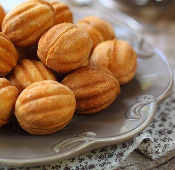 Раздели тесто на небольшие одинаковые кусочки и скатай шарики размером с черешню. Форму разогрей и выпекай печенье порциями на небольшом огне с двух сторон.