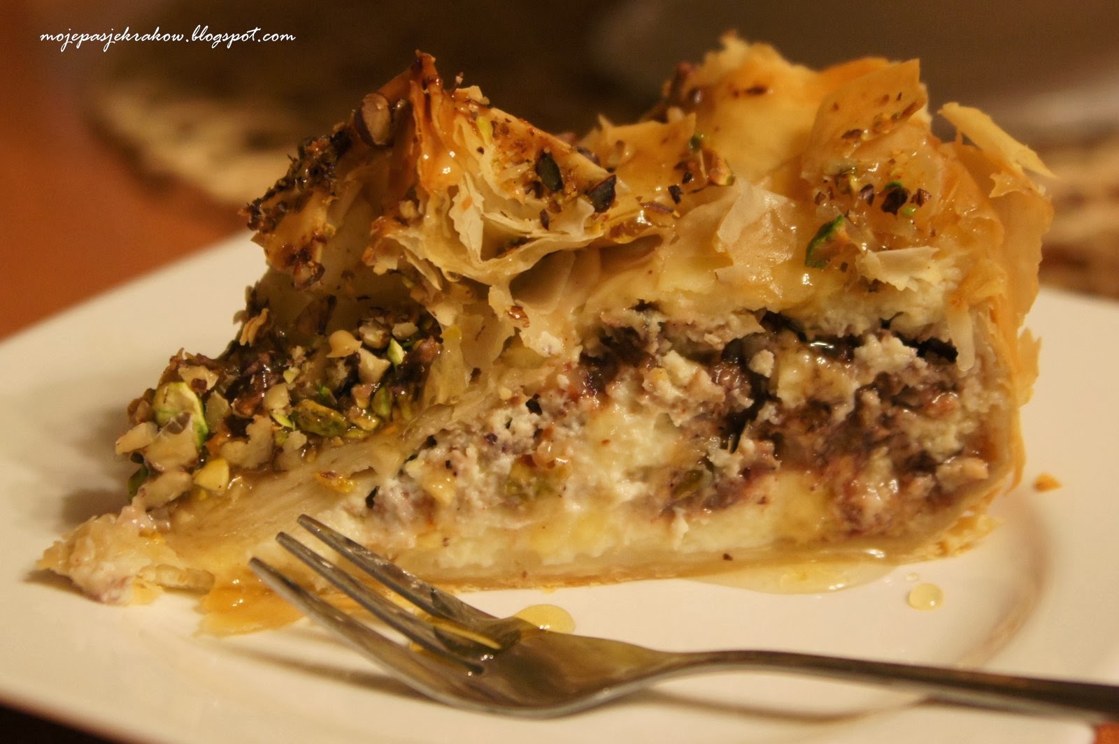 Пластины теста фило вынимать по одному, так как они быстро сохнут.