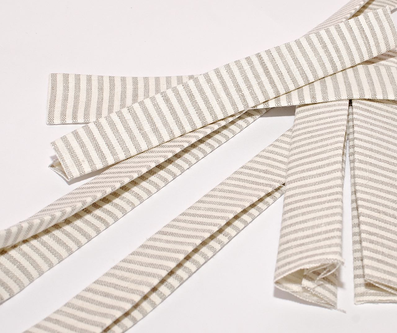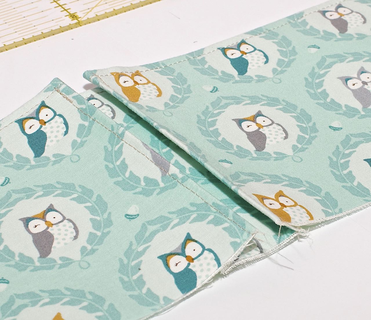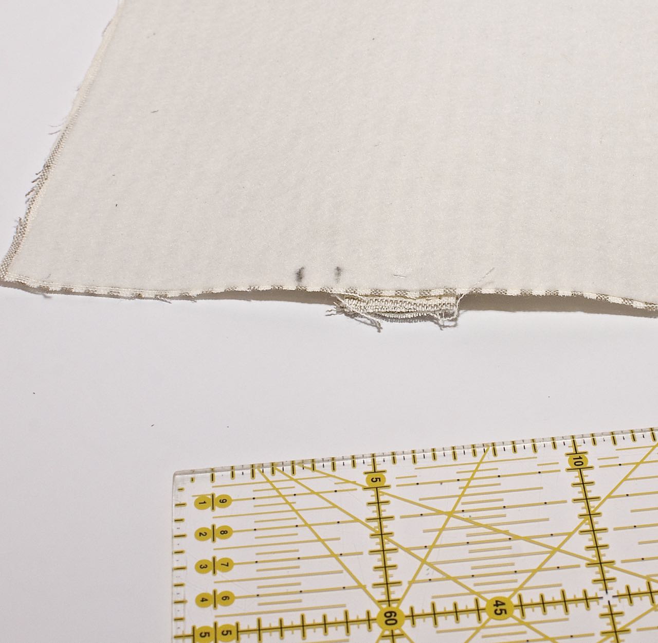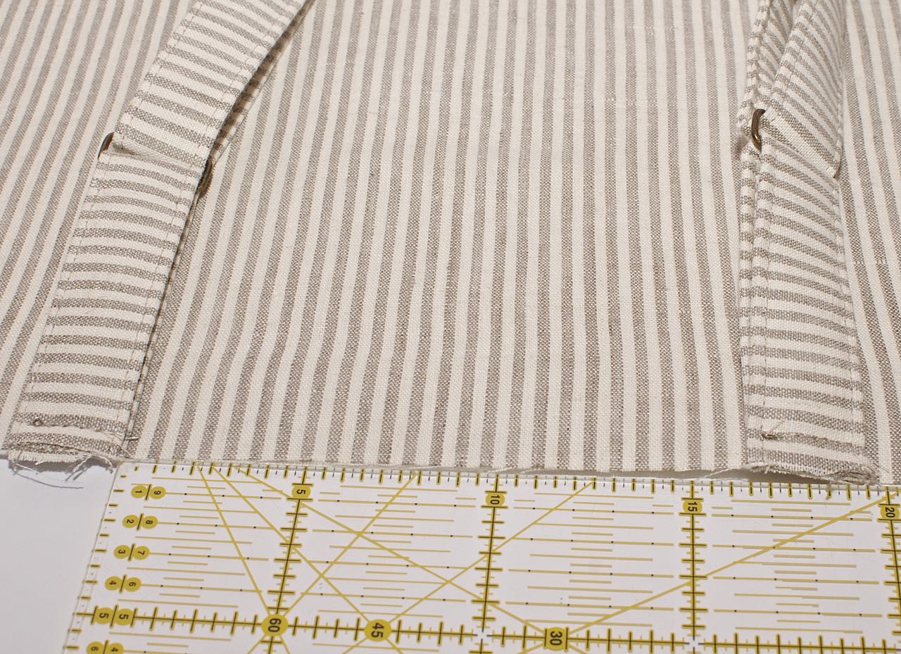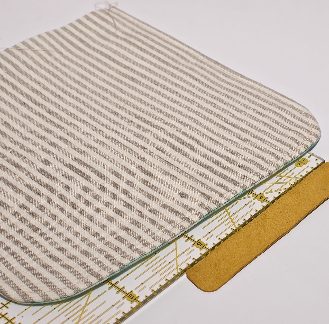 Прежде чем пришить карман к льняной детали, нам необходимо сделать срезы в верхней части основных деталей, превращая их таким образом в трапецию.