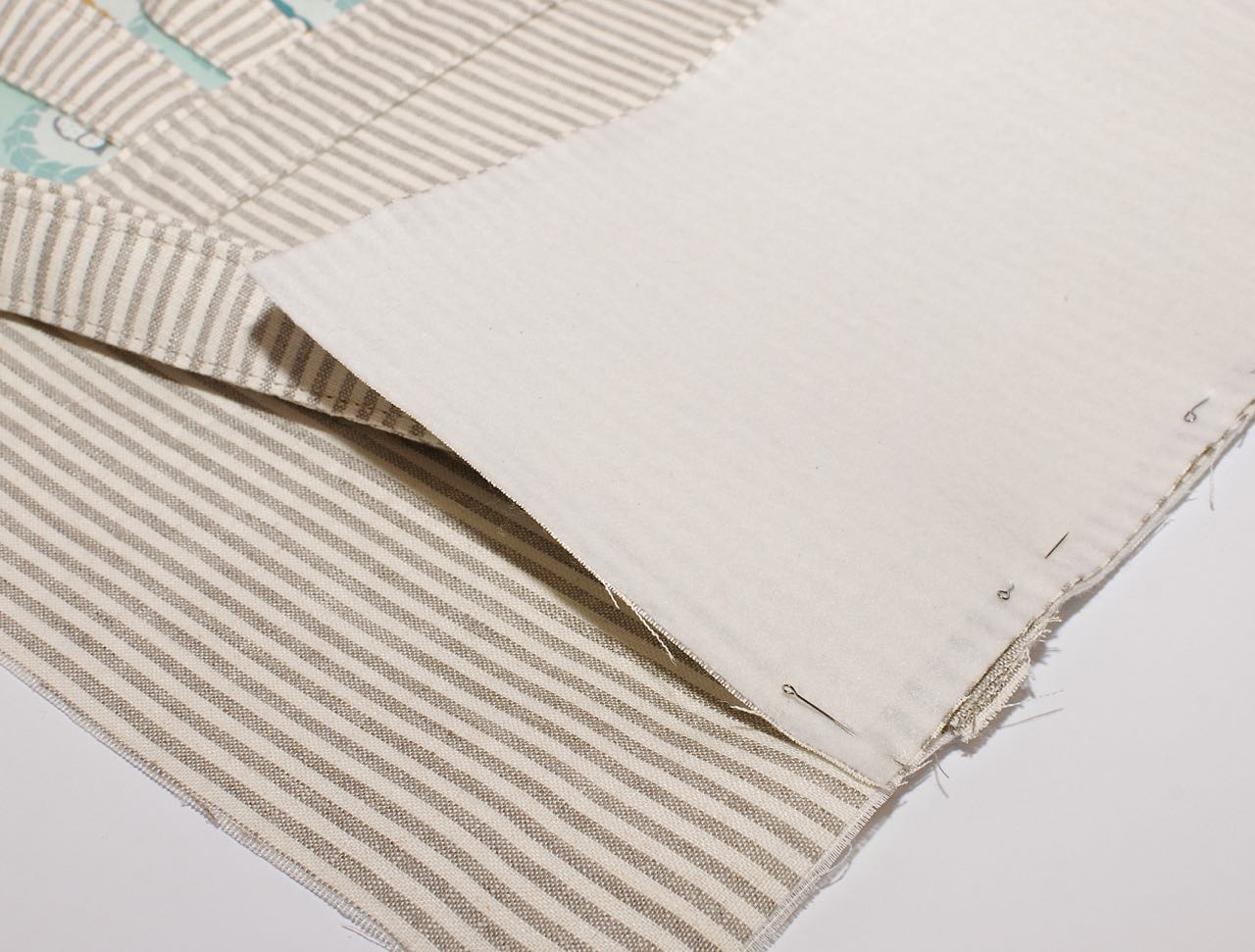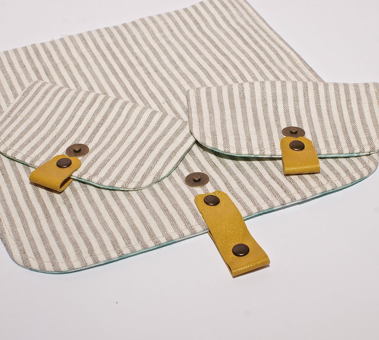 У клапанов внешнюю ткань проклеиваем дублирином, а внутреннюю часть (льняную) — флизелином.
